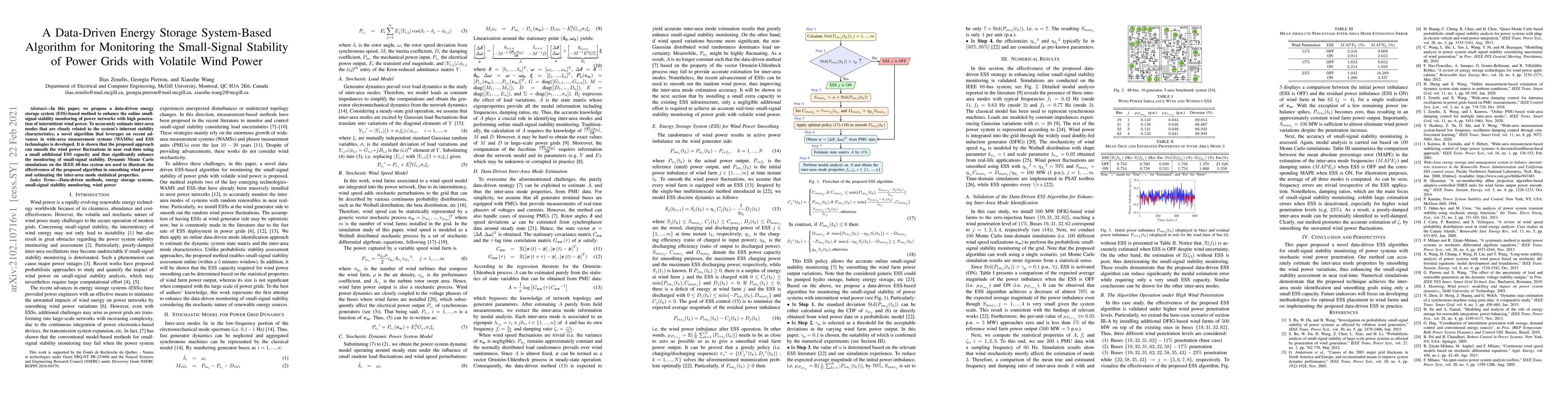 This paper proposes a data-driven energy storage system (ESS)-based algorithm to enhance small-signal stability monitoring in power grids with high wind power penetration. The method leverages wide-area measurement systems and ESS technologies to smooth wind power fluctuations and improve stability monitoring, validated through dynamic Monte Carlo simulations on the IEEE 68-bus system.