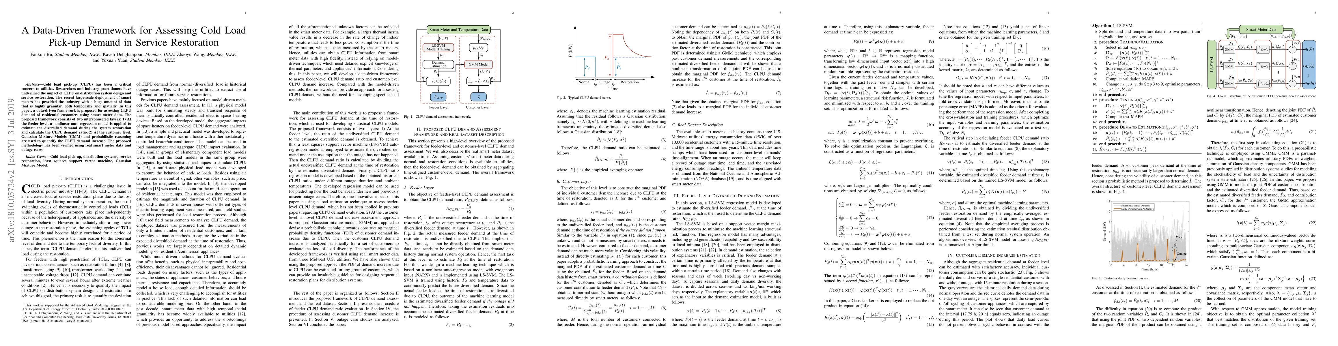 Researchers propose a data-driven framework to assess cold load pick-up demand in service restoration using smart meter data. The framework uses two layers: one for feeder-level analysis and another for customer-level analysis to estimate CLPU demand ratios and increases.