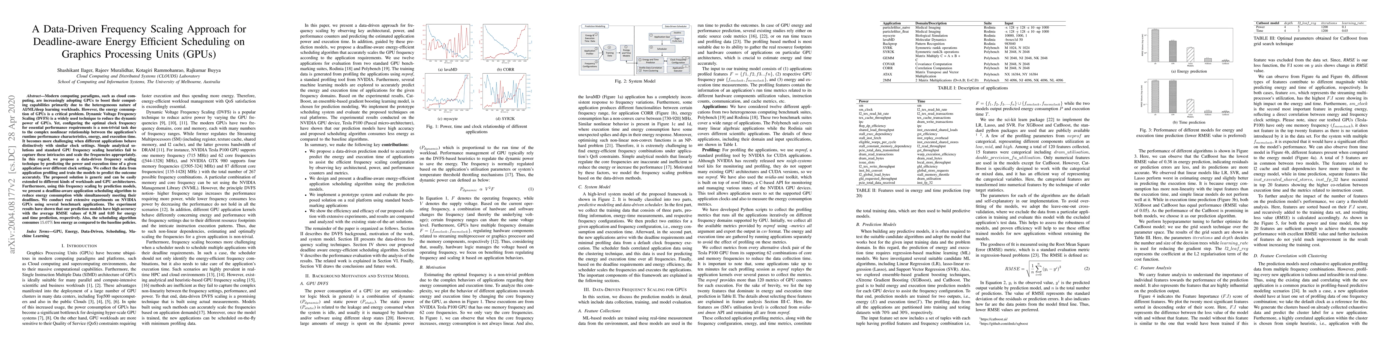 This paper proposes a data-driven frequency scaling approach for GPUs to optimize energy efficiency while meeting application deadlines. It uses predictive models trained on profiling data to accurately determine optimal clock frequencies, achieving 15.07% less energy consumption compared to baseline methods.