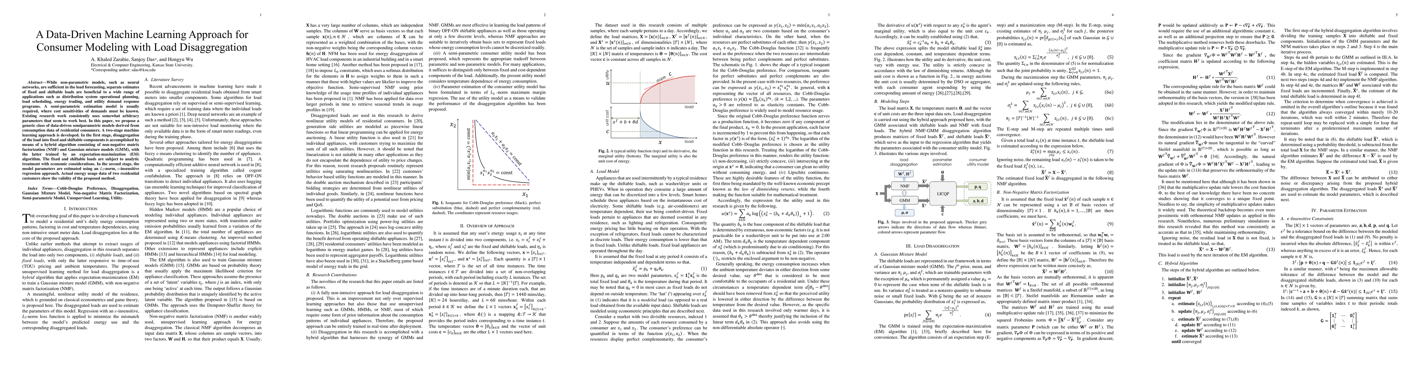 While non-parametric models, such as neural networks, are sufficient in the load forecasting, separate estimates of fixed and shiftable loads are beneficial to a wide range of applications such as distribution system operational planning, load scheduling, energy trading, and utility demand response programs. A semi-parametric estimation model is usually required, where cost sensitivities of demands must be known. Existing research work consistently uses somewhat arbitrary parameters that seem to work best. In this paper, we propose a generic class of data-driven semiparametric models derived from consumption data of residential consumers. A two-stage machine learning approach is developed. In the first stage, disaggregation of the load into fixed and shiftable components is accomplished by means of a hybrid algorithm consisting of non-negative matrix factorization (NMF) and Gaussian mixture models (GMM), with the latter trained by an expectation-maximization (EM) algorithm. The fixed and shiftable loads are subject to analytic treatment with economic considerations. In the second stage, the model parameters are estimated using an L2-norm, epsilon-insensitive regression approach. Actual energy usage data of two residential customers show the validity of the proposed method.