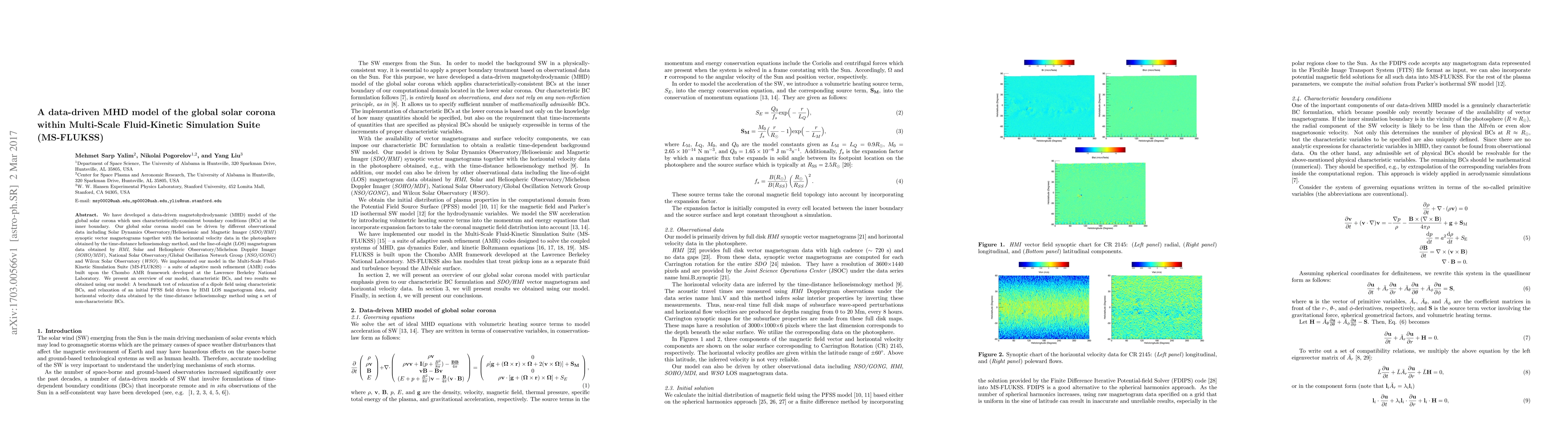 This paper presents a data-driven magnetohydrodynamic (MHD) model of the global solar corona implemented within the Multi-Scale Fluid-Kinetic Simulation Suite (MS-FLUKSS). The model uses characteristically-consistent boundary conditions and can be driven by various observational data sources, showcasing benchmark tests and results from dipole field relaxation and initial potential field source surface (PFSS) field relaxation.