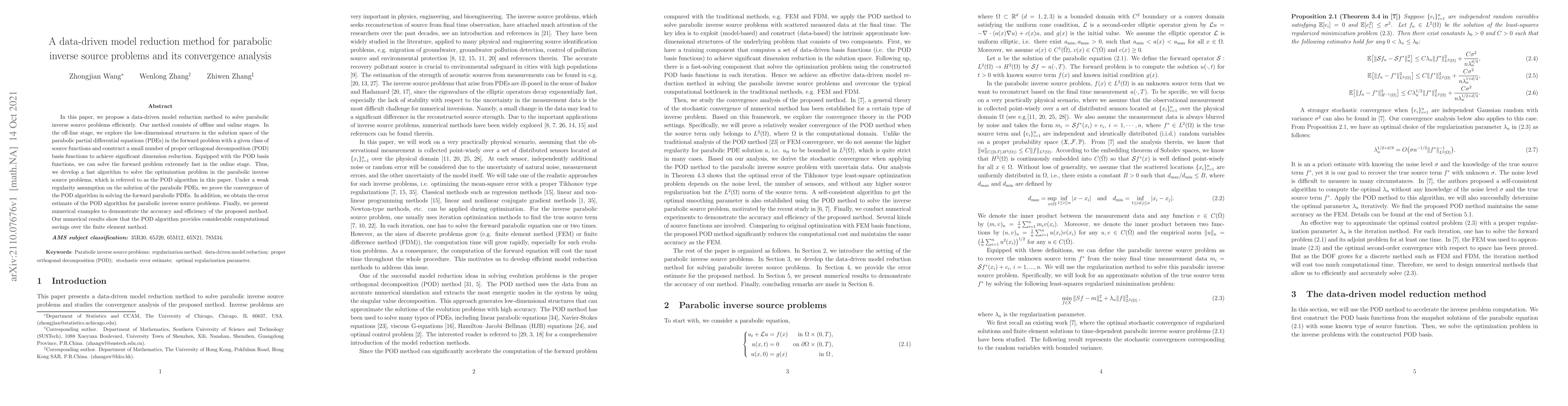 This paper proposes a data-driven model reduction method using proper orthogonal decomposition (POD) to efficiently solve parabolic inverse source problems, featuring offline and online stages for fast computation. The method's convergence and error estimates are analyzed, and numerical results demonstrate significant computational savings compared to the finite element method.