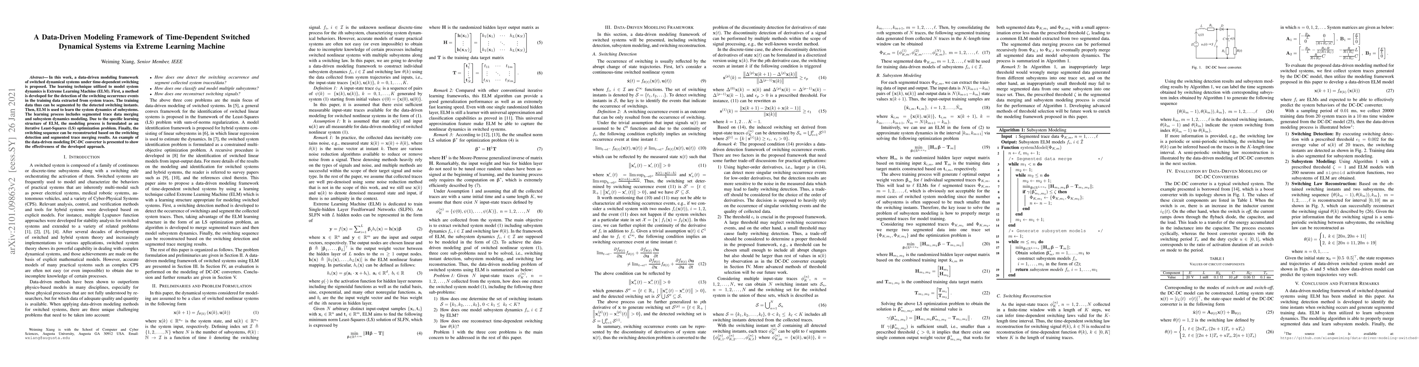 This paper proposes a data-driven modeling framework for time-dependent switched dynamical systems using Extreme Learning Machine (ELM). It develops a method for detecting switching events and uses ELM to model subsystem dynamics, formulating the process as an iterative Least-Squares optimization problem.