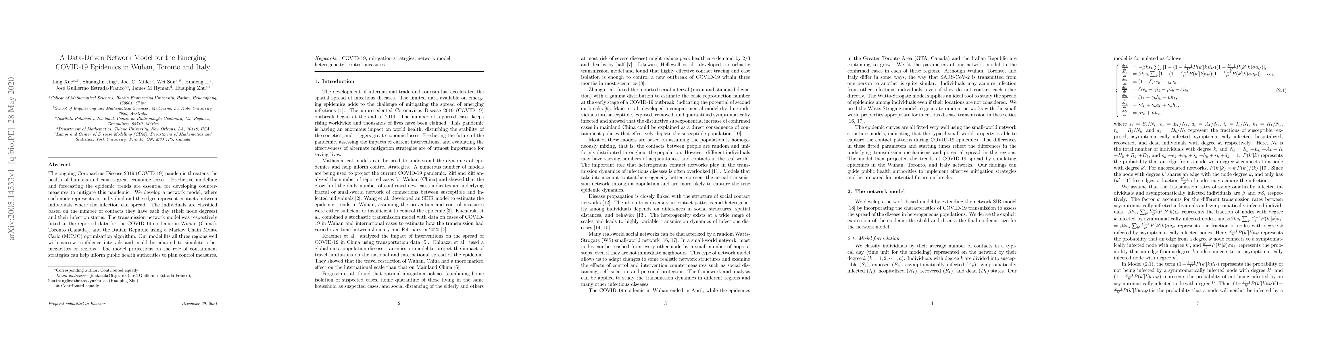 The ongoing Coronavirus Disease 2019 (COVID-19) pandemic threatens the health of humans and causes great economic losses. Predictive modelling and forecasting the epidemic trends are essential for developing countermeasures to mitigate this pandemic. We develop a network model, where each node represents an individual and the edges represent contacts between individuals where the infection can spread. The individuals are classified based on the number of contacts they have each day (their node degrees) and their infection status. The transmission network model was respectively fitted to the reported data for the COVID-19 epidemic in Wuhan (China), Toronto (Canada), and the Italian Republic using a Markov Chain Monte Carlo (MCMC) optimization algorithm. Our model fits all three regions well with narrow confidence intervals and could be adapted to simulate other megacities or regions. The model projections on the role of containment strategies can help inform public health authorities to plan control measures.