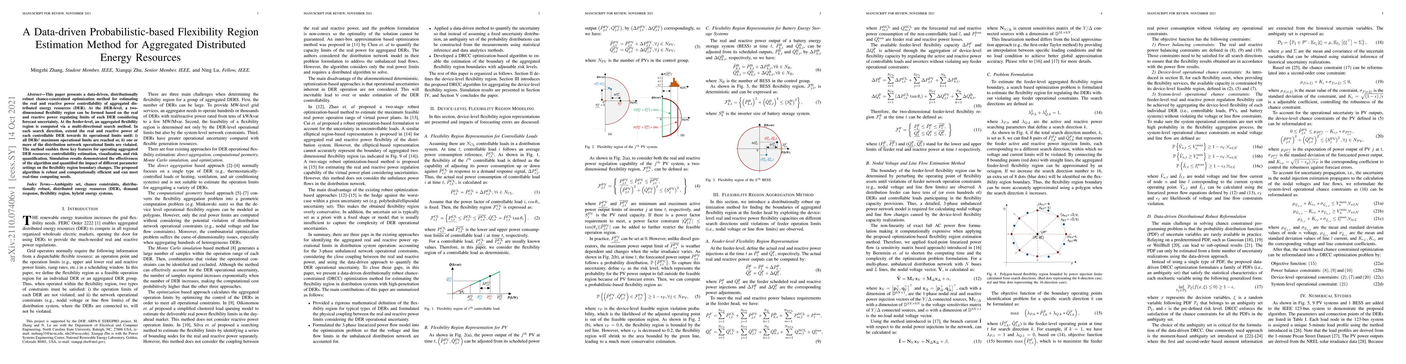 This paper presents a data-driven, distributionally robust chance-constrained optimization method for estimating the real and reactive power controllability of aggregated distributed energy resources (DER). At the DER-level, a two-dimensional flexibility region can be formed based on the real and reactive power regulating limits of each DER considering forecast uncertainty. At the feeder-level, an aggregated flexibility region is computed via a multi-directional search method. In each search direction, extend the real and reactive power of each controllable DER towards its operational limits until: i) all DERs' maximum operational limits are reached or, ii) one or more of the distribution network operational limits are violated. The method enables three key features for operating aggregated DER resources: controllability estimation, visualization, and risk quantification. Simulation results demonstrated the effectiveness of the algorithm and quantified the impact of different parameter settings on the flexibility region boundary changes. The proposed algorithm is robust and computationally efficient and can meet real-time computing needs.