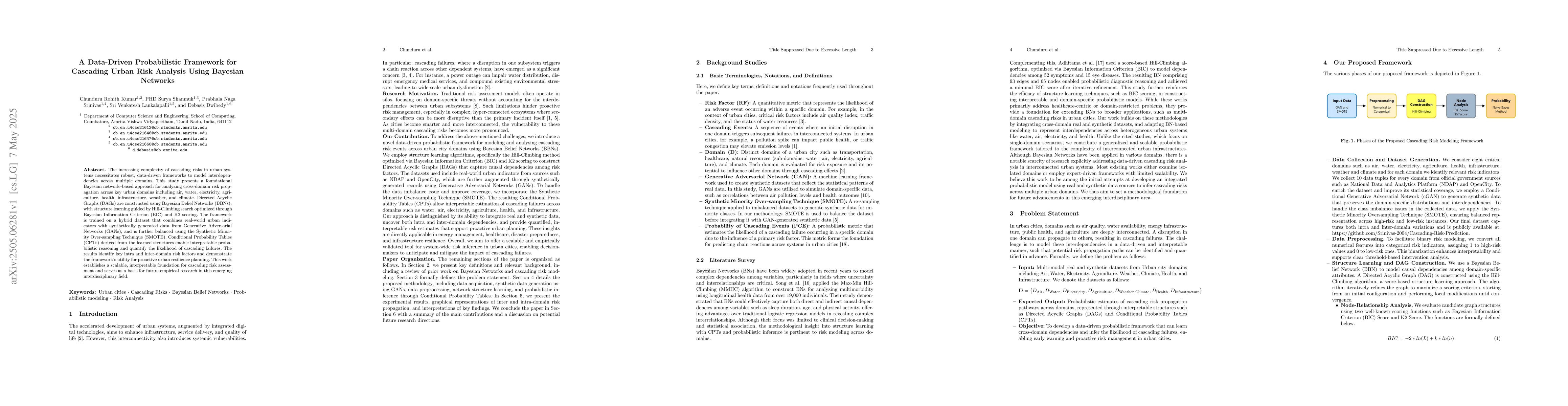 A new Bayesian network-based framework analyzes cascading urban risks across multiple domains using real-world and synthetic data. The framework identifies key risk factors and demonstrates its utility for proactive urban resilience planning.