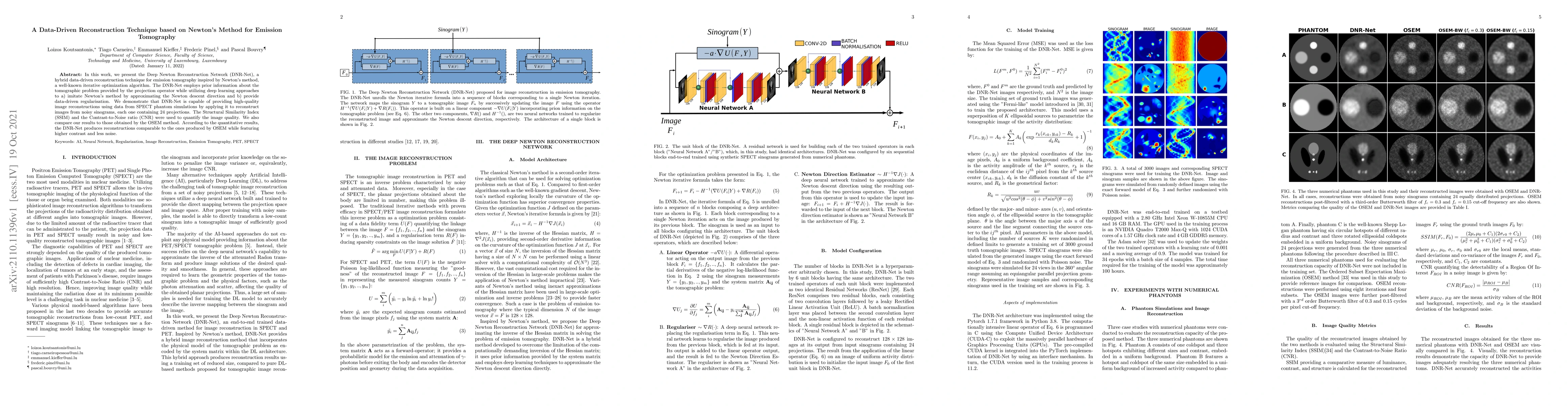 A new data-driven reconstruction technique called DNR-Net uses Newton's method to improve image quality in emission tomography, producing results comparable to OSEM while with higher contrast and less noise.