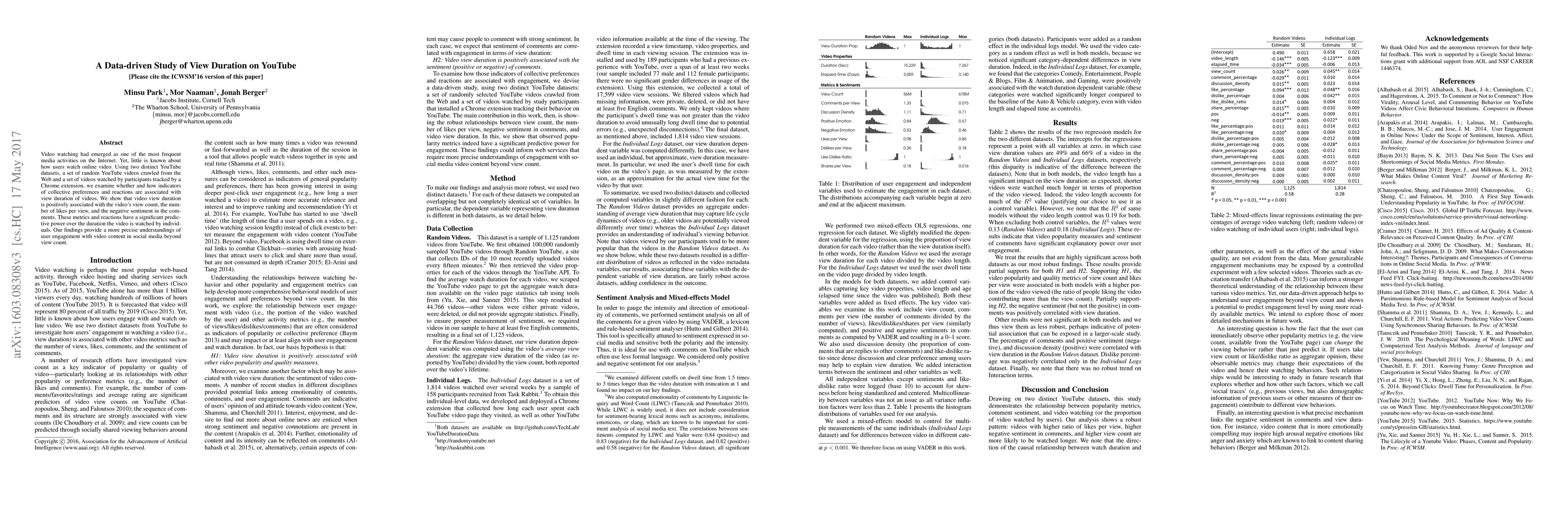 Video watching had emerged as one of the most frequent media activities on the Internet. Yet, little is known about how users watch online video. Using two distinct YouTube datasets, a set of random YouTube videos crawled from the Web and a set of videos watched by participants tracked by a Chrome extension, we examine whether and how indicators of collective preferences and reactions are associated with view duration of videos. We show that video view duration is positively associated with the video's view count, the number of likes per view, and the negative sentiment in the comments. These metrics and reactions have a significant predictive power over the duration the video is watched by individuals. Our findings provide a more precise understandings of user engagement with video content in social media beyond view count.