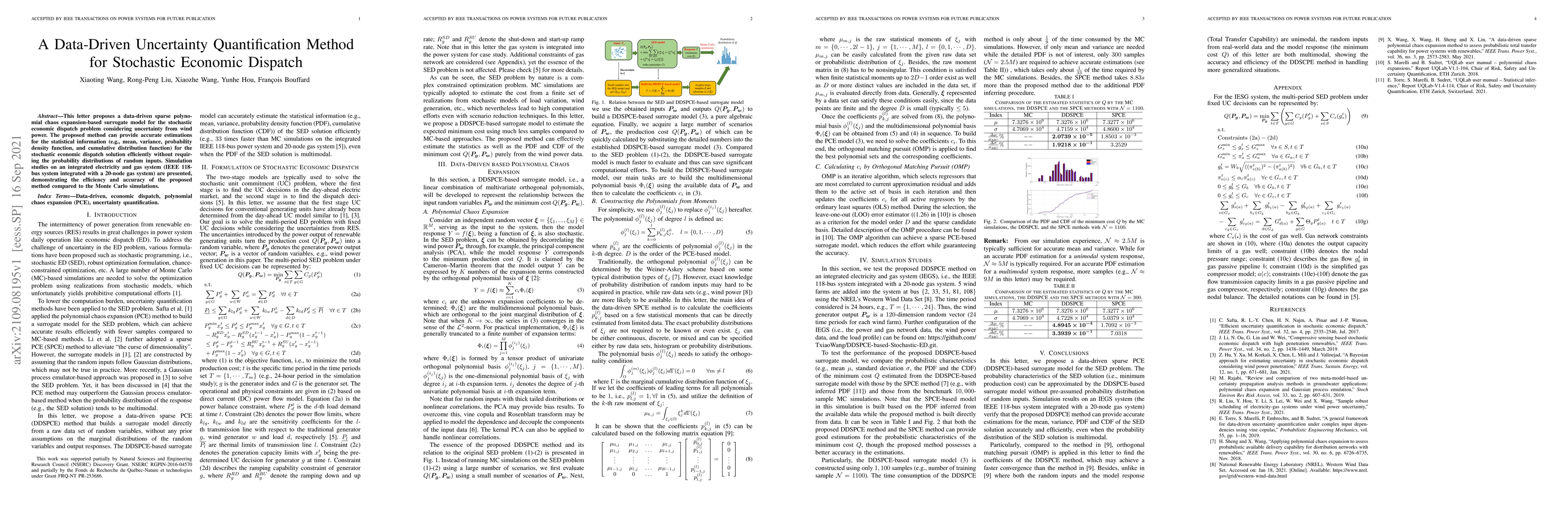 A new method is proposed to accurately estimate statistical information for stochastic economic dispatch without requiring probability distributions of random inputs, using a data-driven approach with polynomial chaos expansion-based surrogate models.