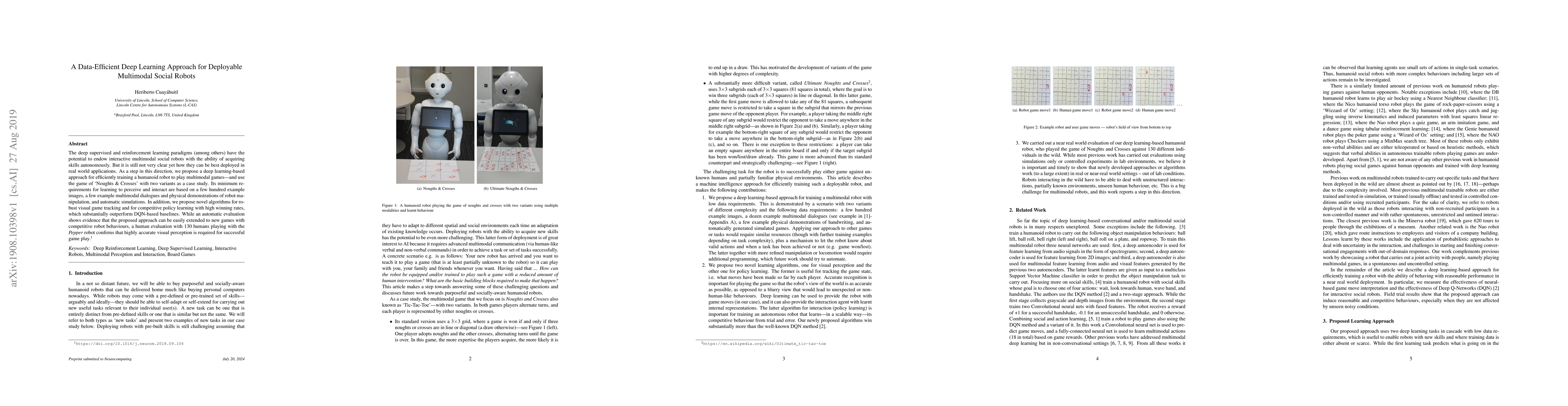 This paper proposes a data-efficient deep learning approach for training humanoid robots to autonomously play multimodal games, using `Noughts & Crosses' as a case study. The method achieves competitive performance with minimal training data and demonstrates successful extension to new games.