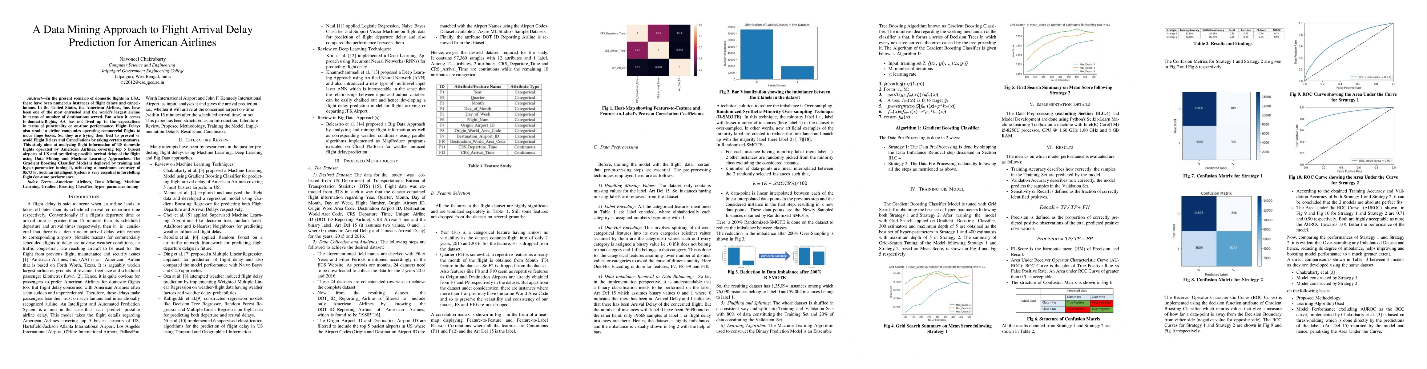 This study employs data mining and machine learning techniques to predict arrival delays for American Airlines' domestic flights, focusing on the top 5 busiest US airports. The Gradient Boosting Classifier model achieves an accuracy of 85.73%, providing an intelligent system to forecast on-time performance and mitigate delays.