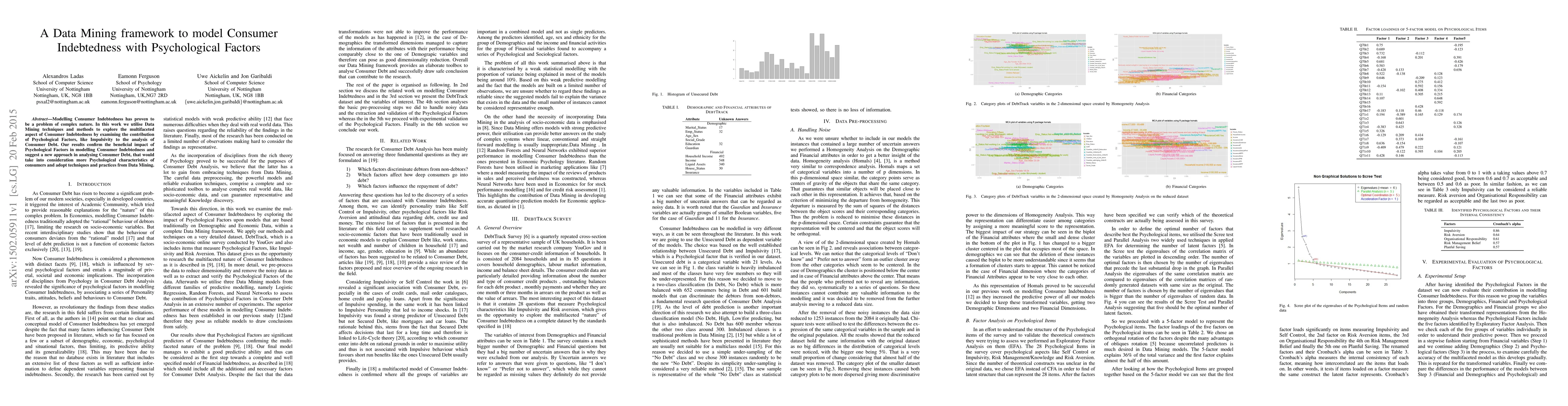Modelling Consumer Indebtedness has proven to be a problem of complex nature. In this work we utilise Data Mining techniques and methods to explore the multifaceted aspect of Consumer Indebtedness by examining the contribution of Psychological Factors, like Impulsivity to the analysis of Consumer Debt. Our results confirm the beneficial impact of Psychological Factors in modelling Consumer Indebtedness and suggest a new approach in analysing Consumer Debt, that would take into consideration more Psychological characteristics of consumers and adopt techniques and practices from Data Mining.