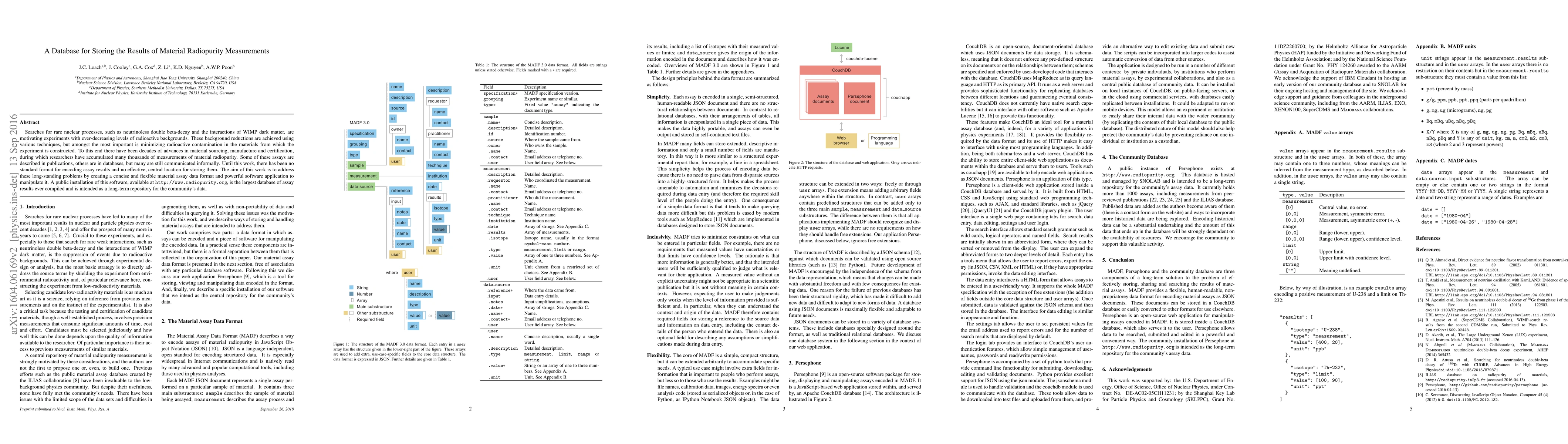 This paper introduces a new database designed to store and standardize the results of material radiopurity measurements, crucial for experiments aiming to detect rare nuclear processes. The database aims to consolidate and formalize the dissemination of assay results, providing a central repository for the research community.