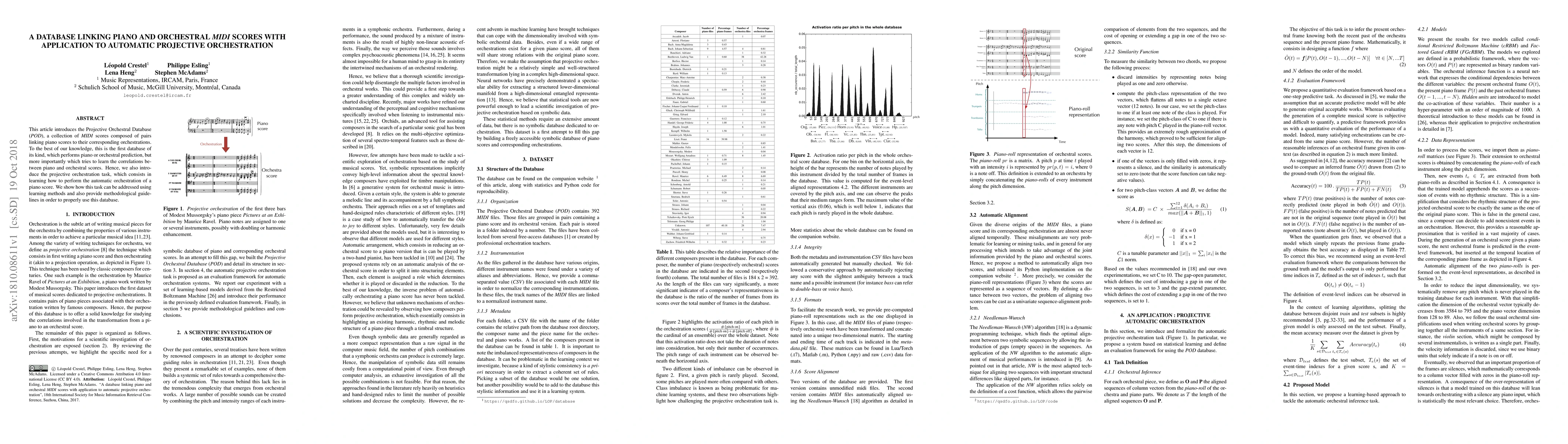 The Projective Orchestral Database (POD) links piano and orchestral MIDI scores to explore automatic projective orchestration, introducing a novel task for learning the correlations between piano and orchestral compositions. The paper provides guidelines for using the database to develop methods for automatic orchestration of piano scores.