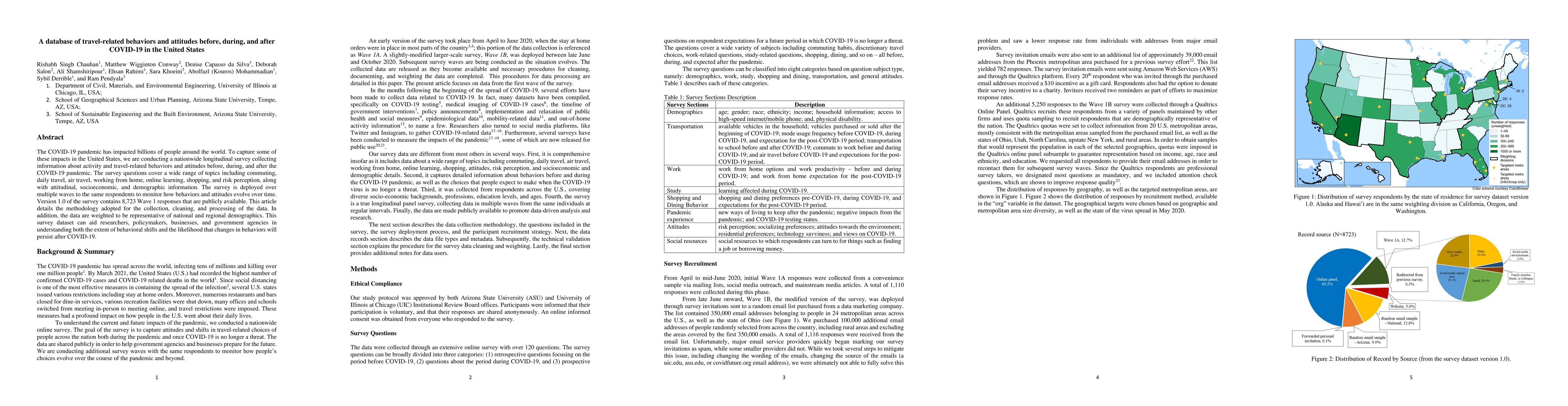 A nationwide survey in the US tracked changes in travel behaviors and attitudes before, during, and after COVID-19, providing insights into long-term behavioral shifts. The survey's data can inform policymakers, businesses, and researchers on post-pandemic behavior patterns.