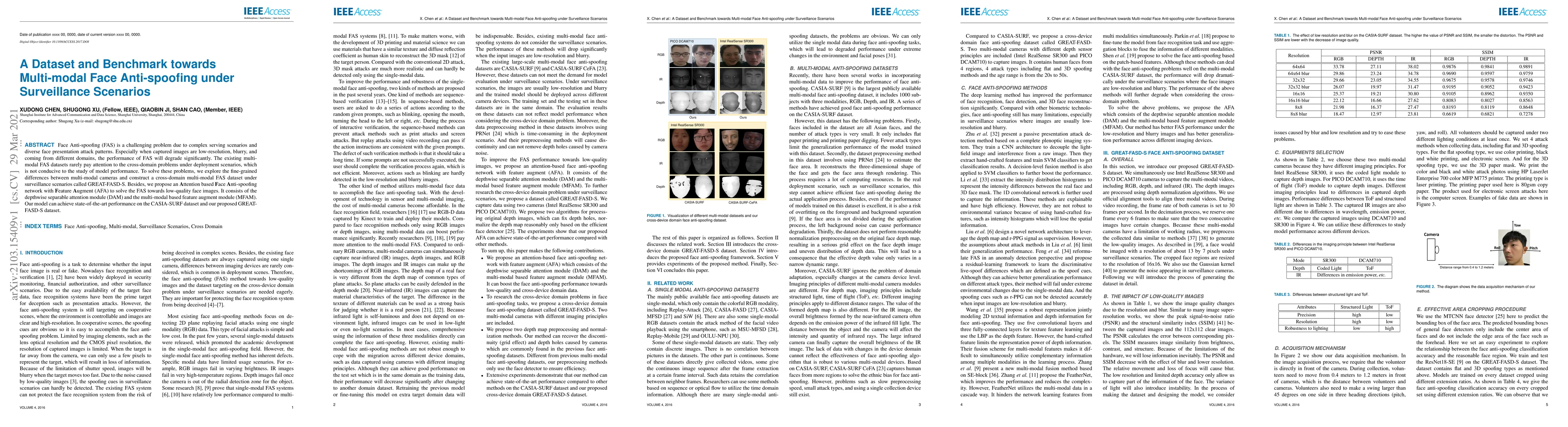 This paper presents GREAT-FASD-S, a new cross-domain multi-modal face anti-spoofing dataset for surveillance scenarios, addressing the lack of datasets that consider deployment challenges. It also introduces an Attention based Face Anti-spoofing network with Feature Augment (AFA) that achieves state-of-the-art performance on both CASIA-SURF and the newly proposed dataset.