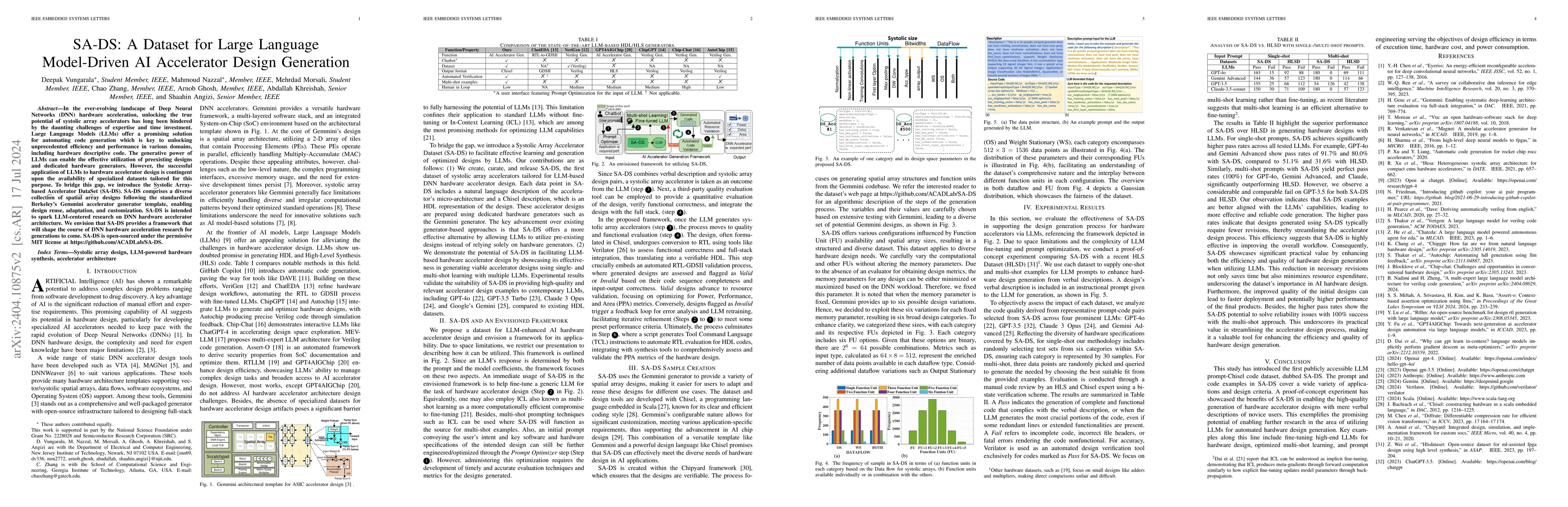 This paper introduces the Systolic Array-based Accelerator DataSet (SA-DS), a specialized dataset to facilitate research on automating the code generation for DNN hardware accelerators using Large Language Models. SA-DS is open-sourced to encourage LLM-driven advancements in hardware acceleration design.