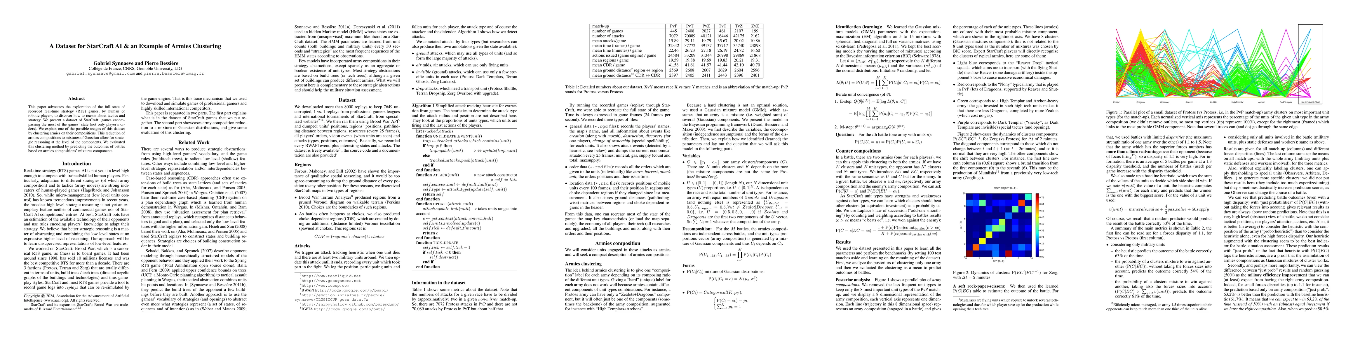 This paper introduces a comprehensive dataset of StarCraft games, capturing the full game state, and demonstrates its use in clustering armies based on their compositions, enabling strategic reasoning through Gaussian mixture models, and evaluates the method by predicting battle outcomes.