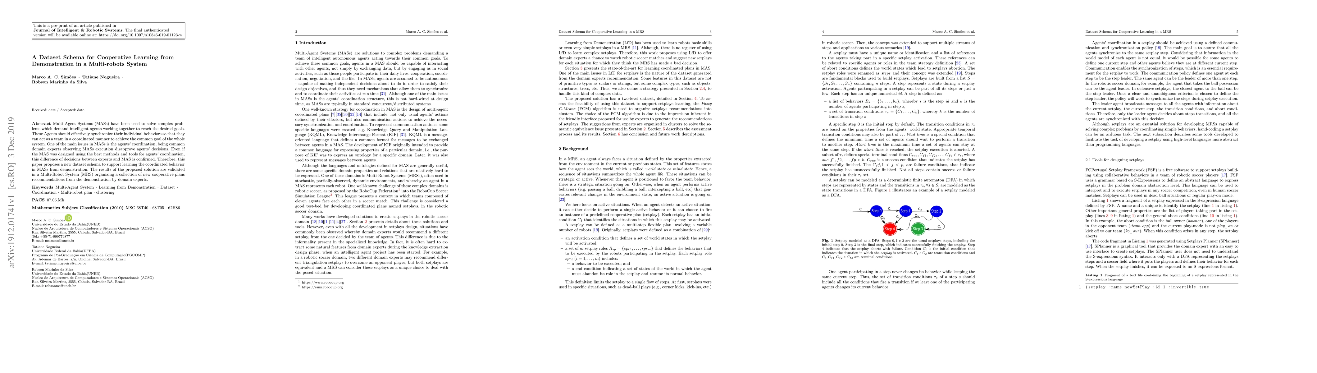 Multi-Agent Systems (MASs) have been used to solve complex problems that demand intelligent agents working together to reach the desired goals. These Agents should effectively synchronize their individual behaviors so that they can act as a team in a coordinated manner to achieve the common goal of the whole system. One of the main issues in MASs is the agents' coordination, being common domain experts observing MASs execution disapprove agents' decisions. Even if the MAS was designed using the best methods and tools for agents' coordination, this difference of decisions between experts and MAS is confirmed. Therefore, this paper proposes a new dataset schema to support learning the coordinated behavior in MASs from demonstration. The results of the proposed solution are validated in a Multi-Robot System (MRS) organizing a collection of new cooperative plans recommendations from the demonstration by domain experts.
