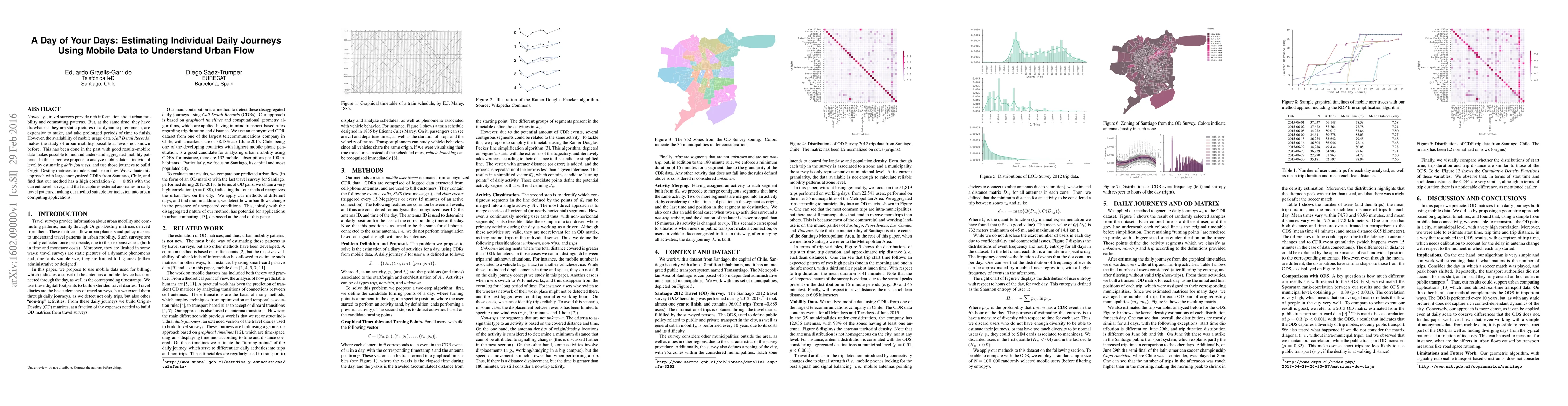 Nowadays, travel surveys provide rich information about urban mobility and commuting patterns. But, at the same time, they have drawbacks: they are static pictures of a dynamic phenomena, are expensive to make, and take prolonged periods of time to finish. However, the availability of mobile usage data (Call Detail Records) makes the study of urban mobility possible at levels not known before. This has been done in the past with good results--mobile data makes possible to find and understand aggregated mobility patterns. In this paper, we propose to analyze mobile data at individual level by estimating daily journeys, and use those journeys to build Origin-Destiny matrices to understand urban flow. We evaluate this approach with large anonymized CDRs from Santiago, Chile, and find that our method has a high correlation ($\rho = 0.89$) with the current travel survey, and that it captures external anomalies in daily travel patterns, making our method suitable for inclusion into urban computing applications.