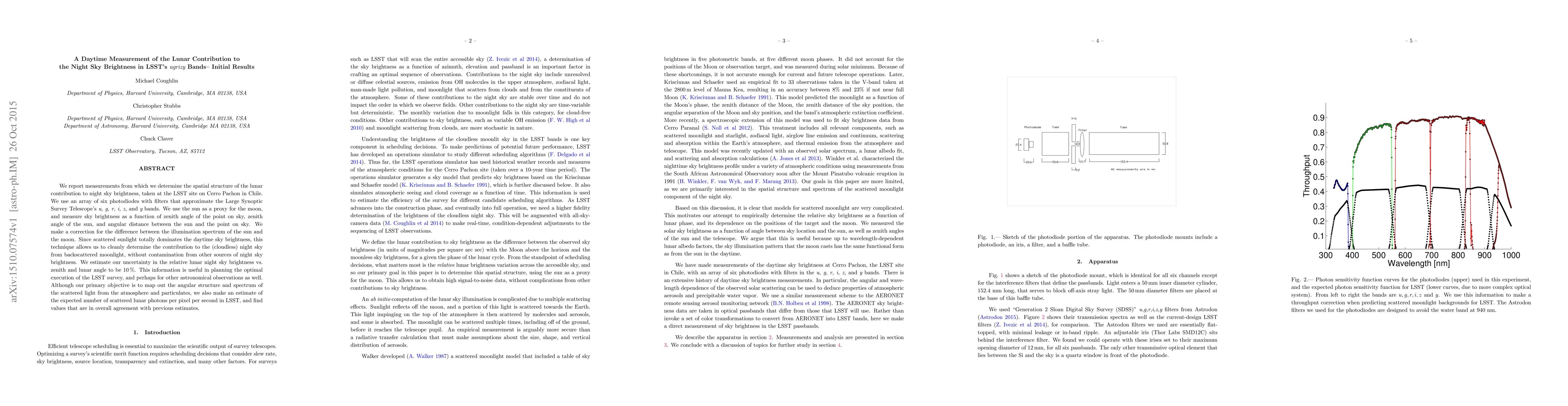 This study measures the lunar contribution to night sky brightness in the LSST's ugrizy bands using daytime observations in Chile, approximating the moon's effect with the sun. The findings provide a 10% uncertainty estimate for lunar night sky brightness, aiding LSST survey planning and potentially other astronomical observations.