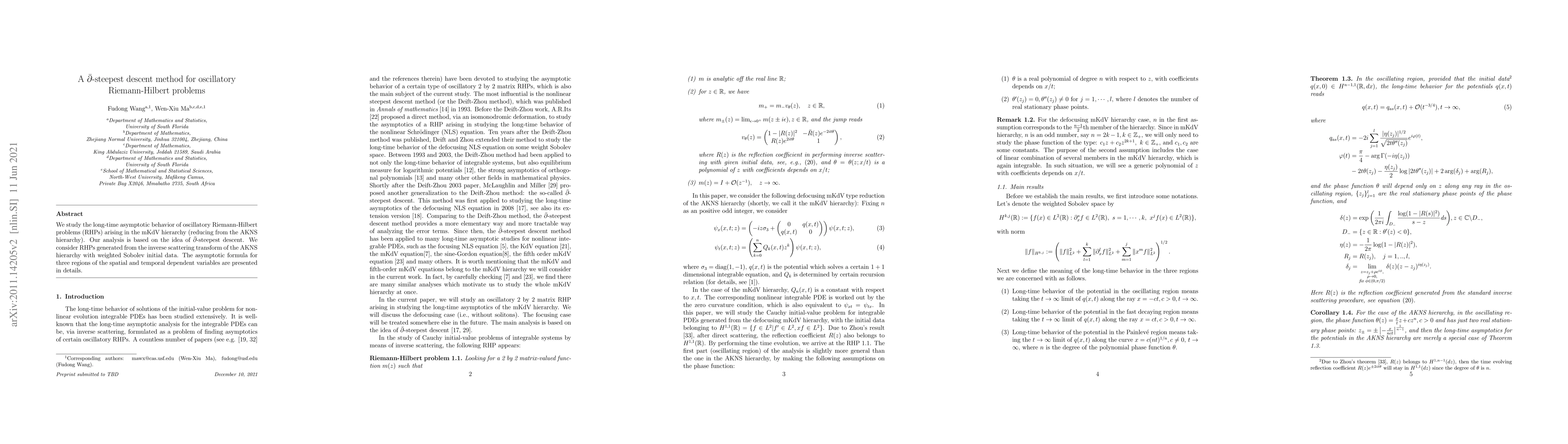 This paper employs the $\dbar$-steepest descent method to analyze the asymptotic behavior of oscillatory Riemann-Hilbert problems from the AKNS hierarchy, focusing on $H^{1,1}(\R)$ initial data. The study divides the analysis into three regions: fast decay, oscillating, and self-similarity, providing formulas applicable to the long-time asymptotics of solutions for NLS, mKdV, and their higher-order variants.