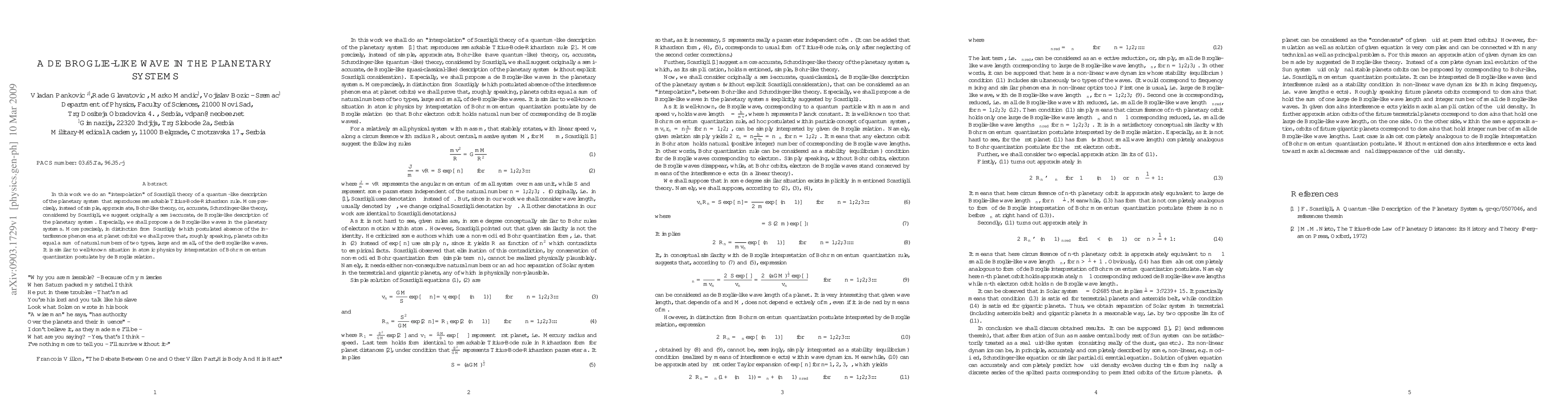 This paper proposes a semi-accurate, de Broglie-like wave model for planetary systems, suggesting that planetary orbits can be described as a sum of natural numbers of two types of de Broglie-like waves, unlike Scardigli's theory which excludes interference phenomena. This approach aims to better explain the Titius-Bode-Richardson rule.