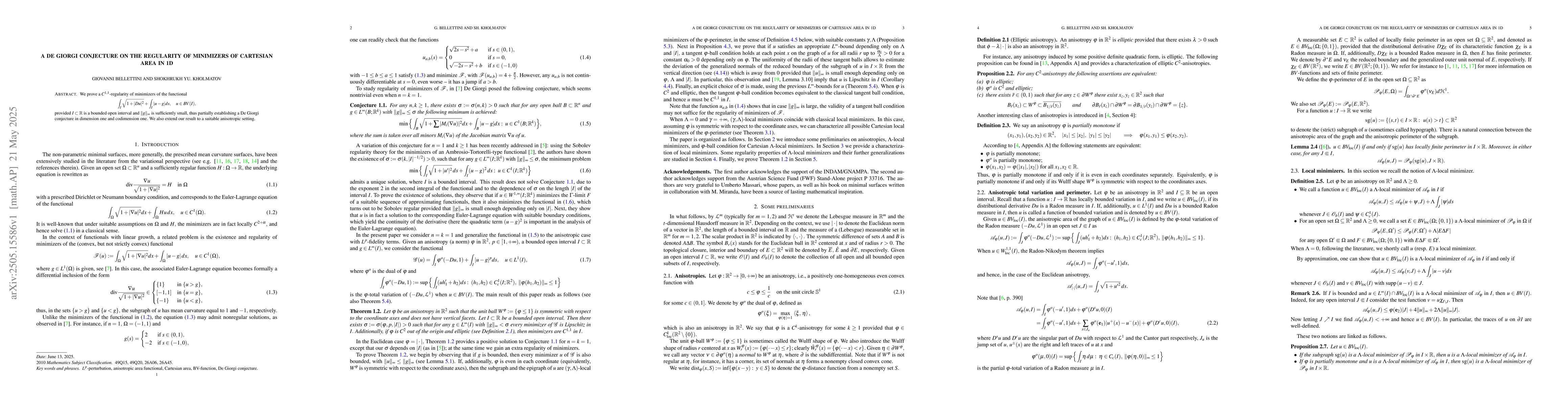 This work extends existing regularity theory for minimizers, partially addressing a long-standing De Giorgi conjecture in a specific but significant manner, and introduces results in an anisotropic context.