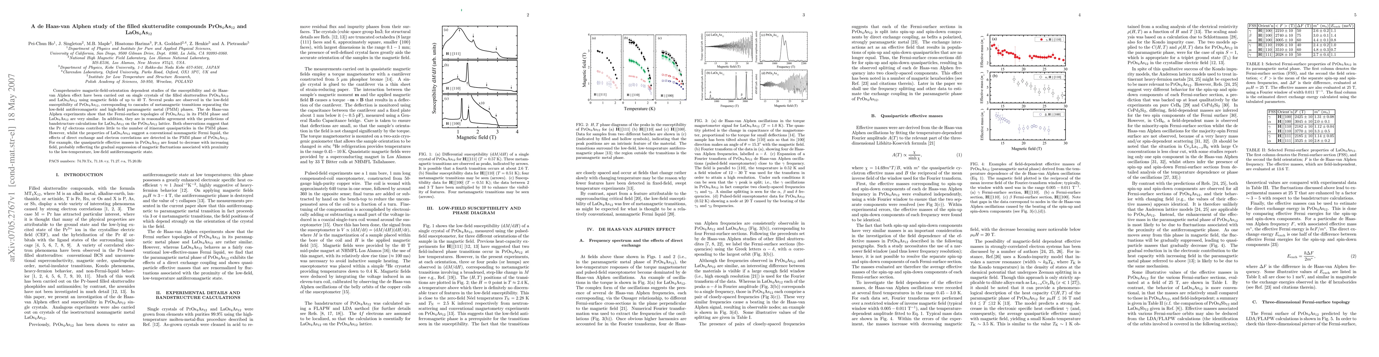 Comprehensive magnetic-field-orientation dependent studies of the susceptibility and de Haas-van Alphen effect have been carried out on single crystals of the filled skutterudites PrOs$_4$As$_{12}$ and LaOs$_4$As$_{12}$ using magnetic fields of up to 40~T. Several peaks are observed in the low-field susceptibility of PrOs$_4$As$_{12}$, corresponding to cascades of metamagnetic transitions separating the low-field antiferromagnetic and high-field paramagnetic metal (PMM) phases. The de Haas-van Alphen experiments show that the Fermi-surface topologies of PrOs$_4$As$_{12}$ in its PMM phase and LaOs$_4$As$_{12}$ are very similar. In addition, they are in reasonable agreement with the predictions of bandstructure calculations for LaOs$_4$As$_{12}$ on the PrOs$_4$As$_{12}$ lattice. Both observations suggest that the Pr 4$f$ electrons contribute little to the number of itinerant quasiparticles in the PMM phase. However, whilst the properties of LaOs$_4$As$_{12}$ suggest a conventional nonmagnetic Fermi liquid, the effects of direct exchange and electron correlations are detected in the PMM phase of PrOs$_4$As$_{12}$. For example, the quasiparticle effective masses in PrOs$_4$As$_{12}$ are found to decrease with increasing field, probably reflecting the gradual suppression of magnetic fluctuations associated with proximity to the low-temperature, low-field antiferromagnetic state.