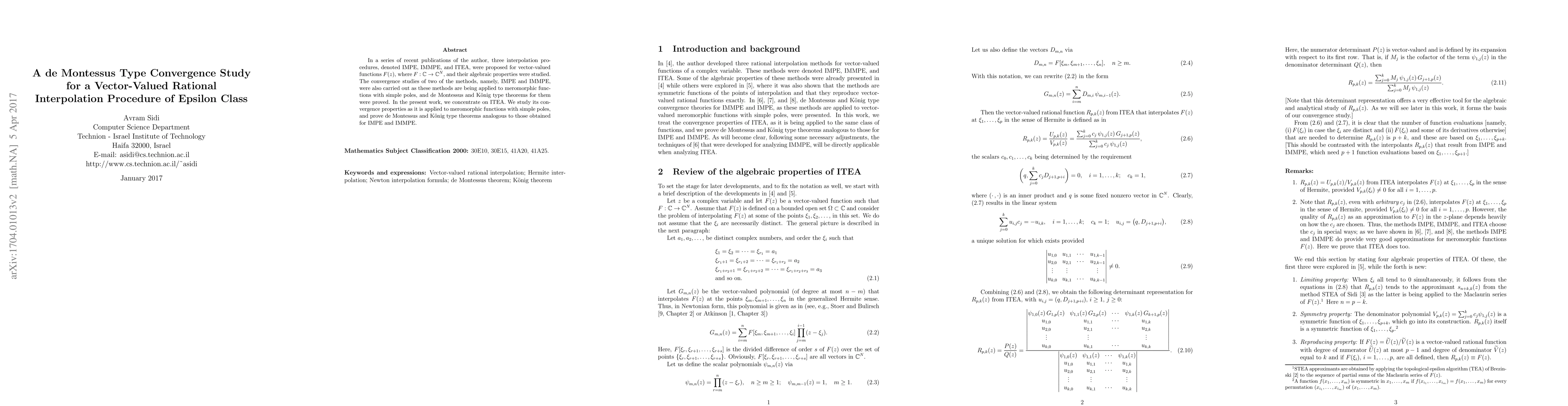 In a series of recent publications of the author, three interpolation procedures, denoted IMPE, IMMPE, and ITEA, were proposed for vector-valued functions $F(z)$, where $F : \C \to\C^N$, and their algebraic properties were studied. The convergence studies of two of the methods, namely, IMPE and IMMPE, were also carried out as these methods are being applied to meromorphic functions with simple poles, and de Montessus and K\"{o}nig type theorems for them were proved. In the present work, we concentrate on ITEA. We study its convergence properties as it is applied to meromorphic functions with simple poles, and prove de Montessus and K\"{o}nig type theorems analogous to those obtained for IMPE and IMMPE.