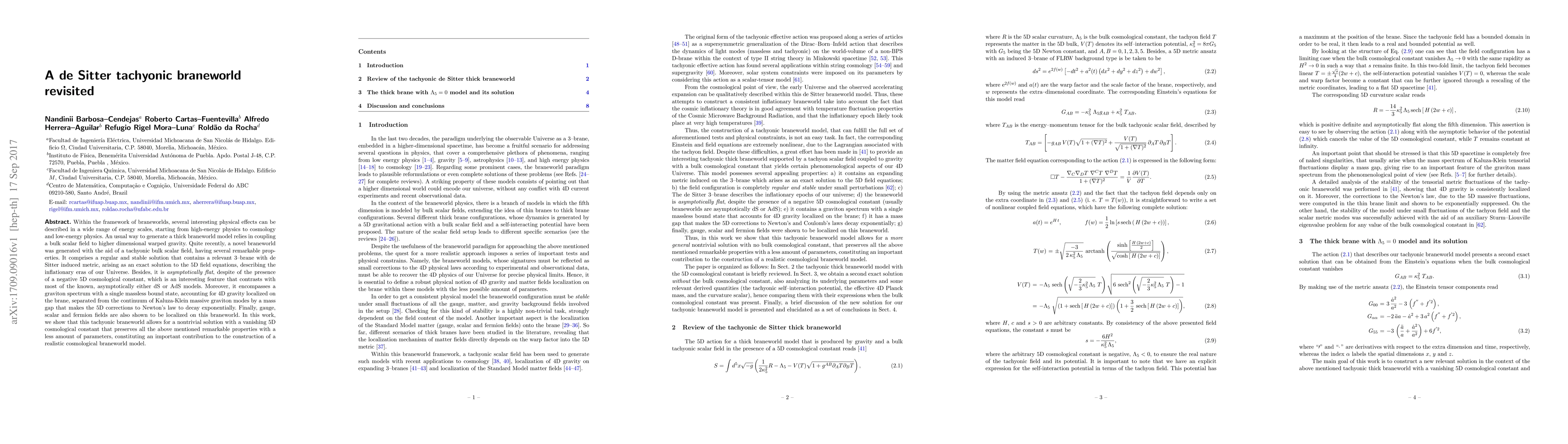 This paper revisits a novel de Sitter tachyonic braneworld model, demonstrating that it can sustain a stable solution with a vanishing 5D cosmological constant while preserving its unique properties, including localized 4D gravity and an asymptotically flat metric. This simplification aids in constructing a more realistic cosmological braneworld model.