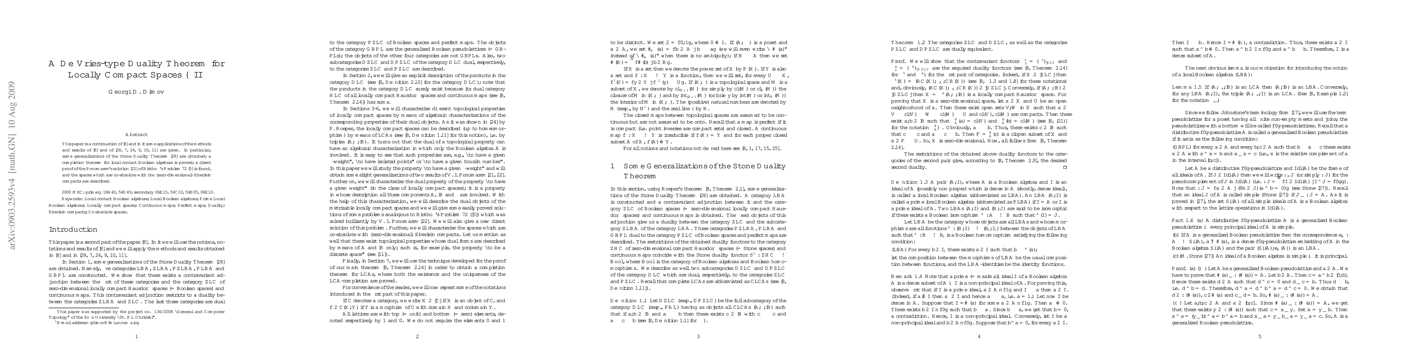This paper extends the methods and results from its predecessor and applies them to generalize the Stone Duality Theorem, prove a completion theorem for local contact Boolean algebras, and provide a direct proof for Ponomarev's solution to Birkhoff's Problem 72. It also characterizes spaces co-absolute with zero-dimensional Eberlein compacts.