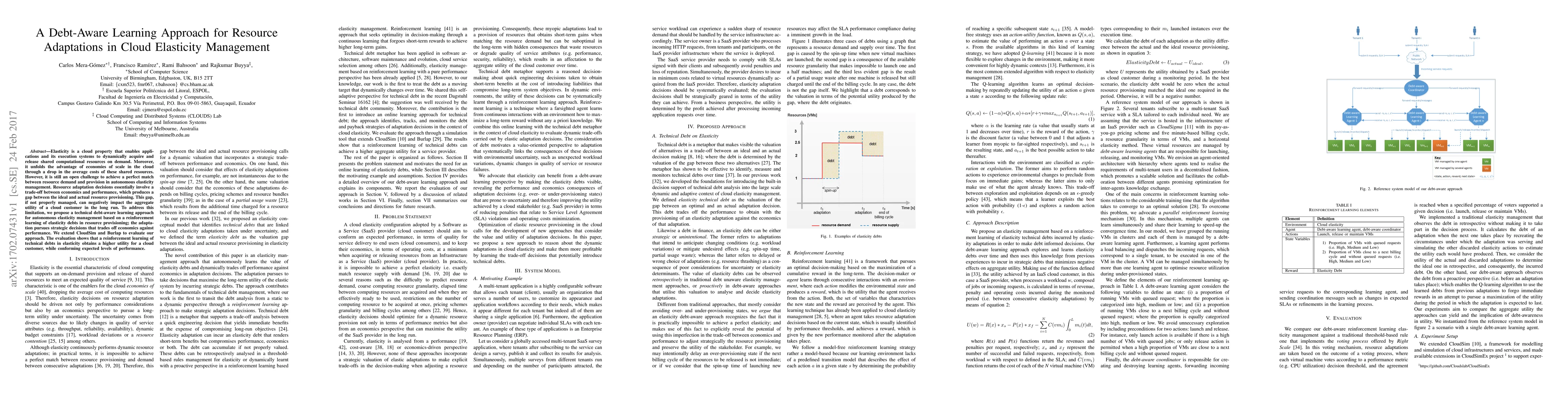This paper proposes a debt-aware learning approach for managing cloud elasticity, leveraging reinforcement learning to balance economic efficiency and performance. The method aims to reduce the gap between ideal and actual resource provisioning, thereby improving the long-term utility for cloud customers.