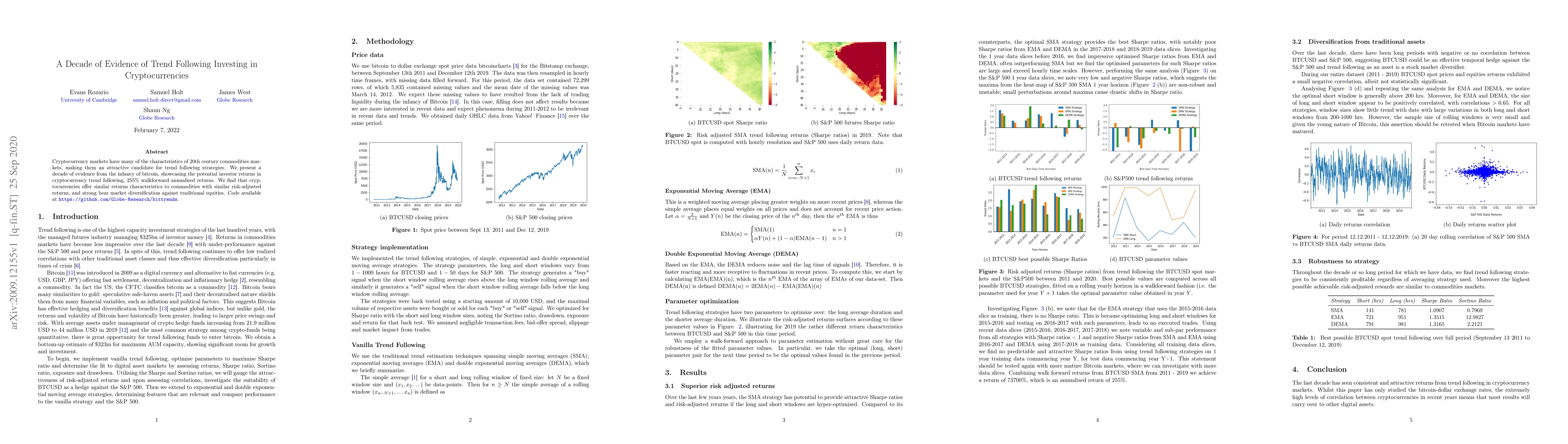 Cryptocurrency markets exhibit characteristics similar to commodities markets, enabling trend following strategies with high returns (255% walkforward annualised), comparable risk-adjusted returns, and strong bear market diversification.