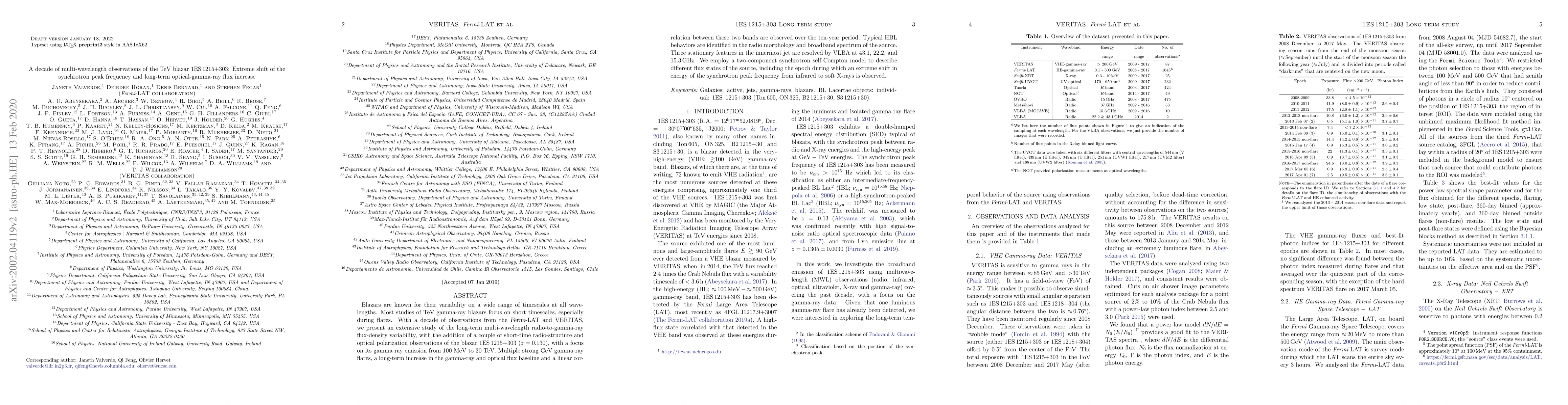 Blazars are known for their variability on a wide range of timescales at all wavelengths. Most studies of TeV gamma-ray blazars focus on short timescales, especially during flares. With a decade of observations from the Fermi-LAT and VERITAS, we present an extensive study of the long-term multi-wavelength radio-to-gamma-ray flux-density variability, with the addition of a couple of short-time radio-structure and optical polarization observations of the blazar 1ES 1215+303 (z=0.130), with a focus on its gamma-ray emission from 100 MeV to 30 TeV. Multiple strong GeV gamma-ray flares, a long-term increase in the gamma-ray and optical flux baseline and a linear correlation between these two bands are observed over the ten-year period. Typical HBL behaviors are identified in the radio morphology and broadband spectrum of the source. Three stationary features in the innermost jet are resolved by VLBA at 43.1, 22.2, and 15.3 GHz. We employ a two-component synchrotron self-Compton model to describe different flux states of the source, including the epoch during which an extreme shift in energy of the synchrotron peak frequency from infrared to soft X-rays is observed.