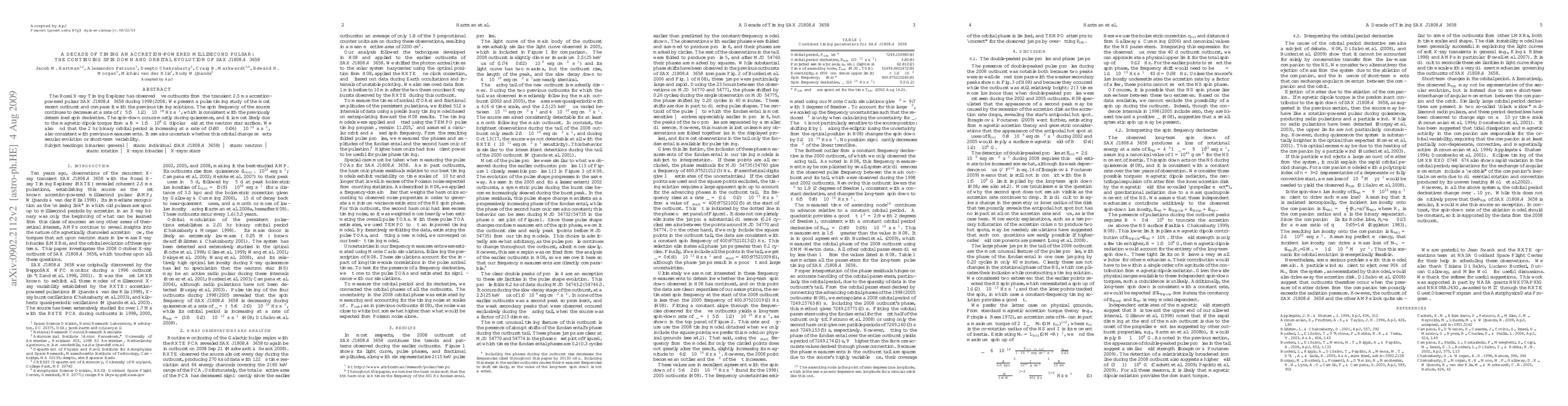 This study analyzes the spin down and orbital evolution of the accretion-powered millisecond pulsar SAX J1808.4-3658, finding a continuous decrease in spin frequency and an increasing orbital period consistent with previous observations. The spin-down is likely due to magnetic dipole torque from a strong surface magnetic field.
