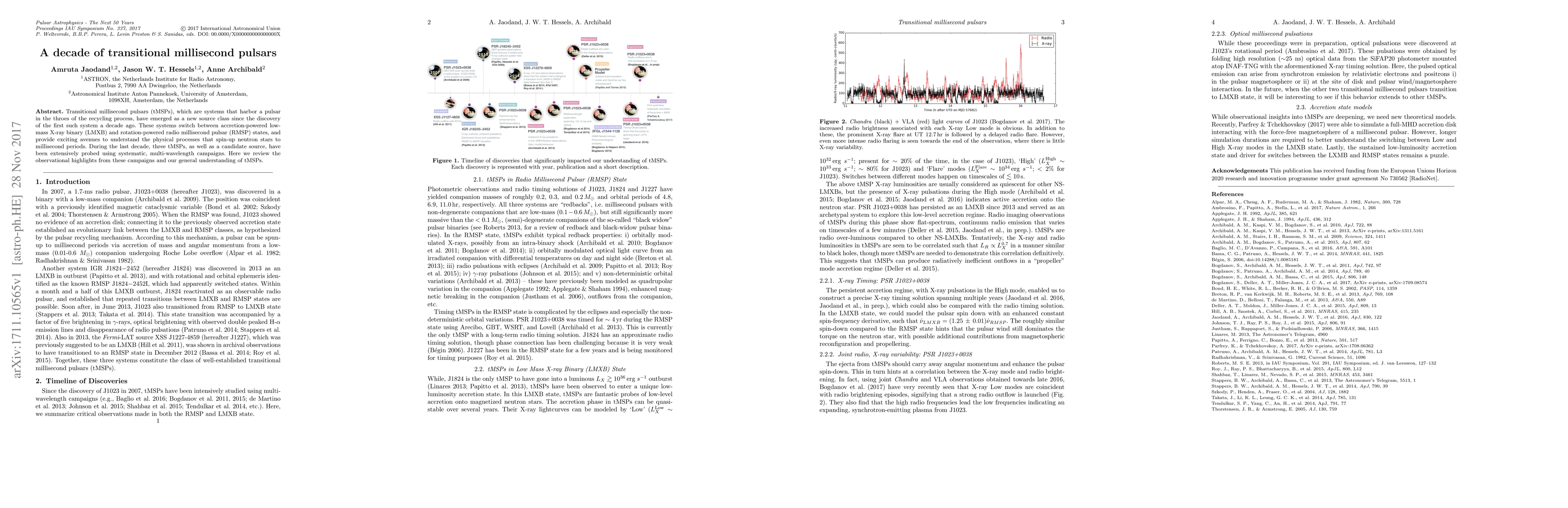 This paper reviews the decade-long study of transitional millisecond pulsars (tMSPs), systems that transition between accretion-powered X-ray binaries and rotation-powered radio millisecond pulsars. It highlights key observational findings and advances in understanding the processes that spin-up neutron stars.