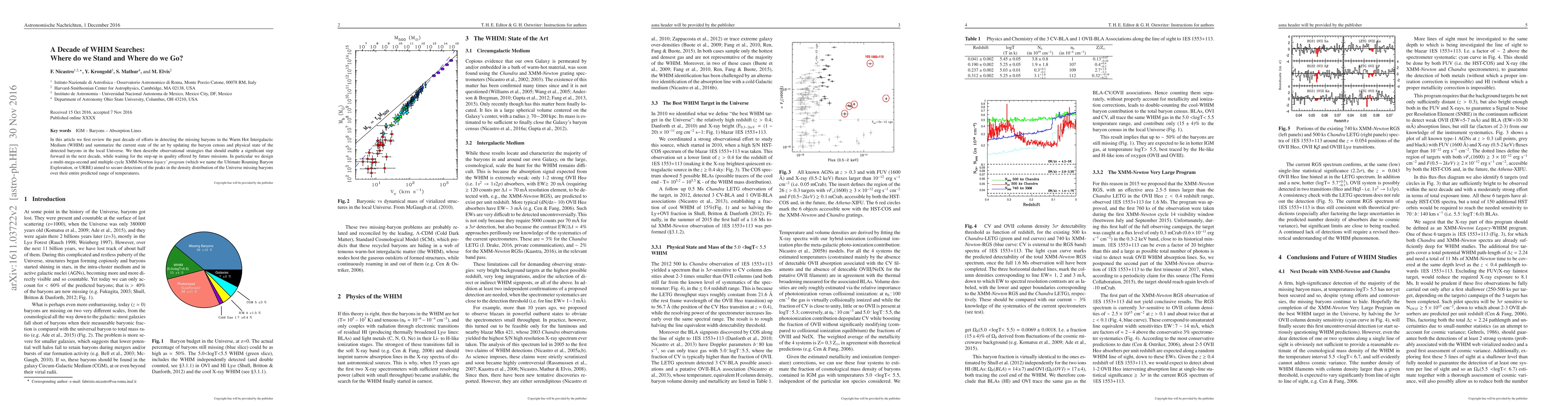 This paper reviews the past decade's efforts to detect missing baryons in the Warm Hot Intergalactic Medium (WHIM) and updates the current state of the baryon census. It proposes a multi-cycle XMM-Newton legacy program, named URBE, to detect missing baryons across their predicted temperature range in the next decade.