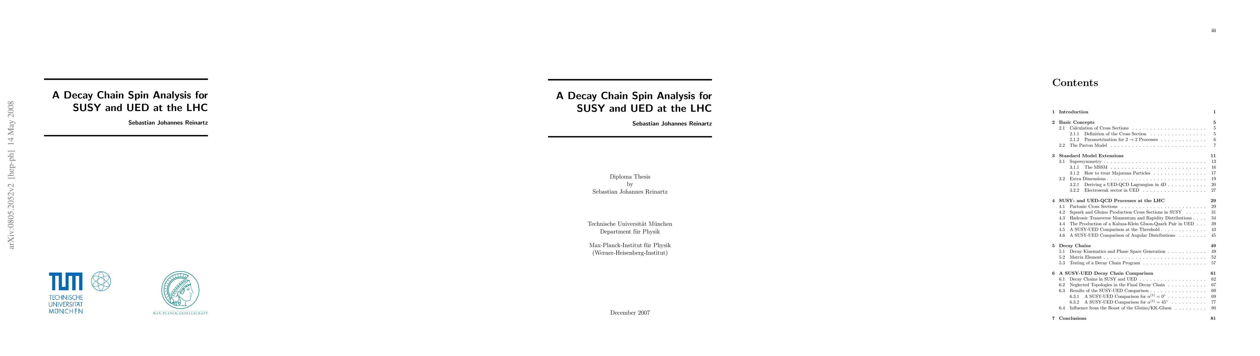 In this thesis we concentrate on the determination of the spin of an intermediate particle by using a decay chain. In SUSY the gluino is especially interesting for searches at the LHC, since it is a Majorana fermion which can produce like-sign dileptons in the final state. In UED the like-sign dilepton signature could occur as well from the decay of a bosonic KK-gluon. As we will show, angular distributions of the outgoing b-jets in SUSY and UED differ due to the different coupling structures. The effect from the different boosts of gluino and heavy gluon is shown to be much smaller. The hadronic UED cross section for KK-gluon KK-quark collisions is calculated in leading order and compared to the gluino squark collision in SUSY. The analytically given partonic cross sections are compared at the threshold.