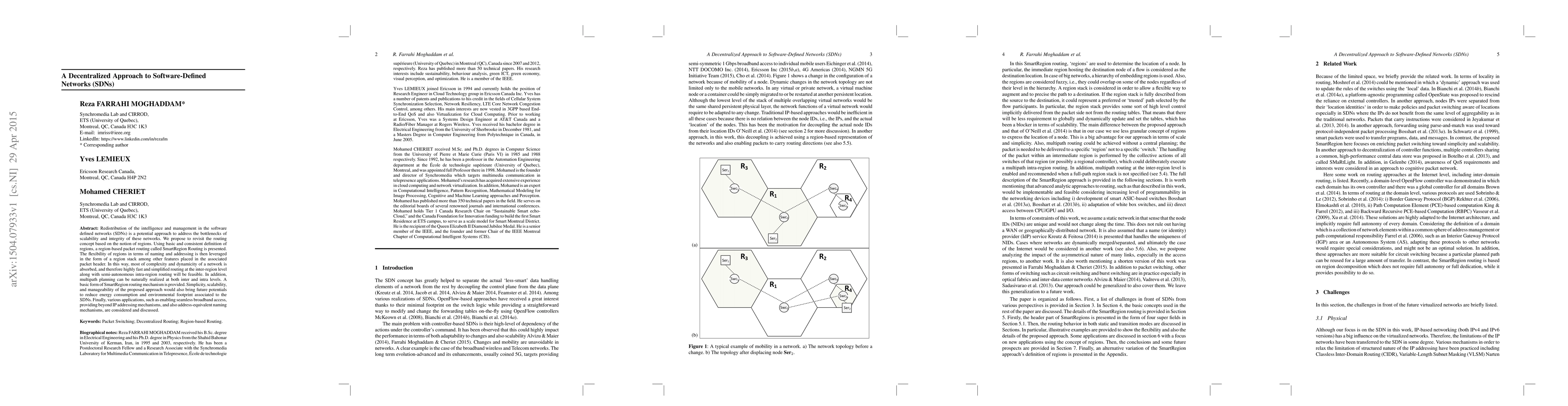 This paper proposes a decentralized, region-based routing approach called SmartRegion Routing for Software-Defined Networks (SDNs) to enhance scalability and manageability. The method simplifies inter-region routing and enables multipath planning, potentially reducing energy consumption and environmental impact.