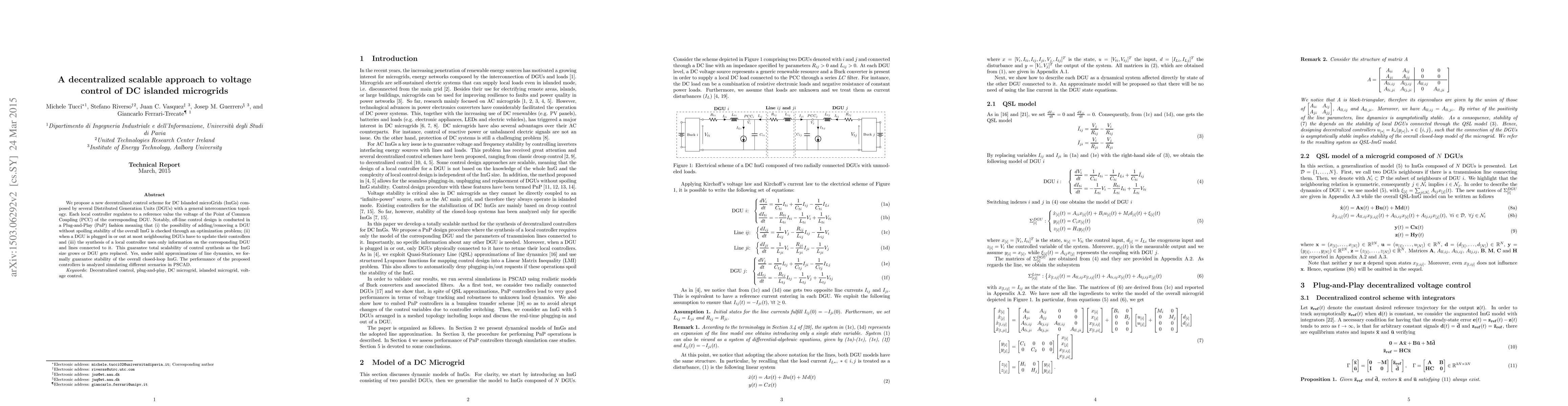 This paper proposes a decentralized control scheme for DC Islanded MicroGrids (ImGs) that ensures scalability and stability. The scheme allows for the addition or removal of Distributed Generation Units without affecting the overall stability, using a Plug-and-Play approach and local controller optimization. Stability is formally guaranteed under mild approximations.