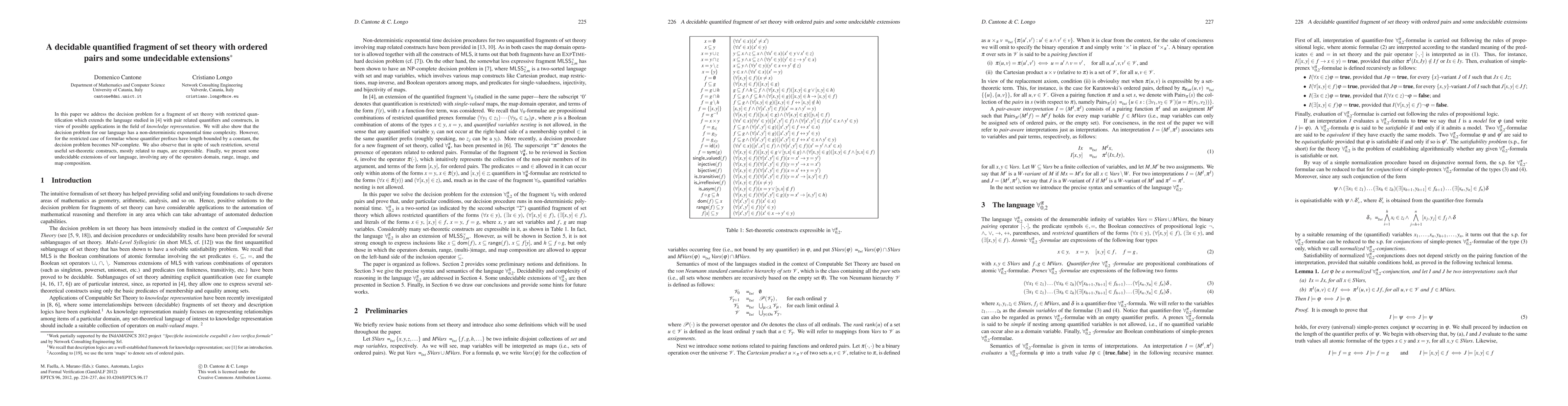 Researchers developed a fragment of set theory with ordered pairs and some undecidable extensions, finding that it has non-deterministic exponential time complexity but remains NP-complete for restricted cases.