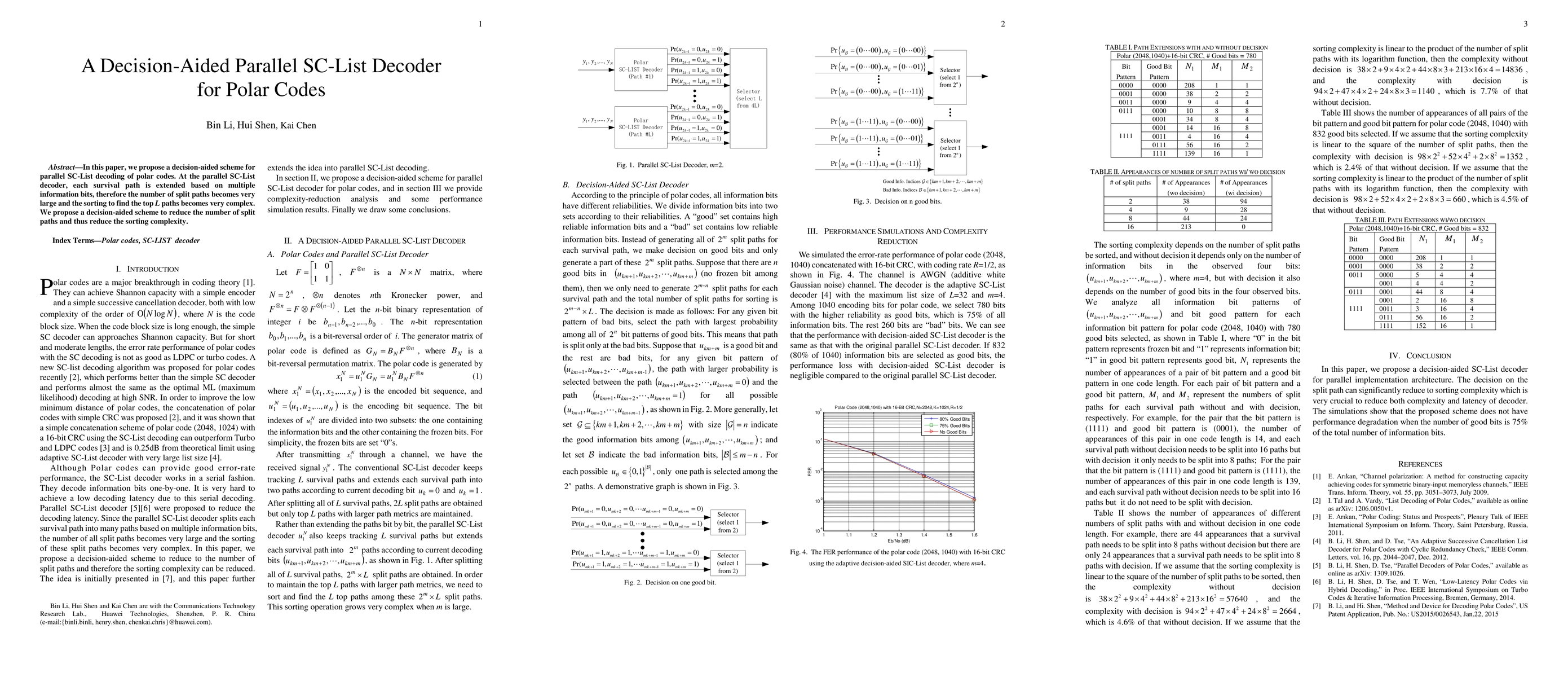 Researchers propose a decision-aided parallel SC-List decoder for polar codes to reduce sorting complexity by limiting the number of split paths, improving decoding efficiency.