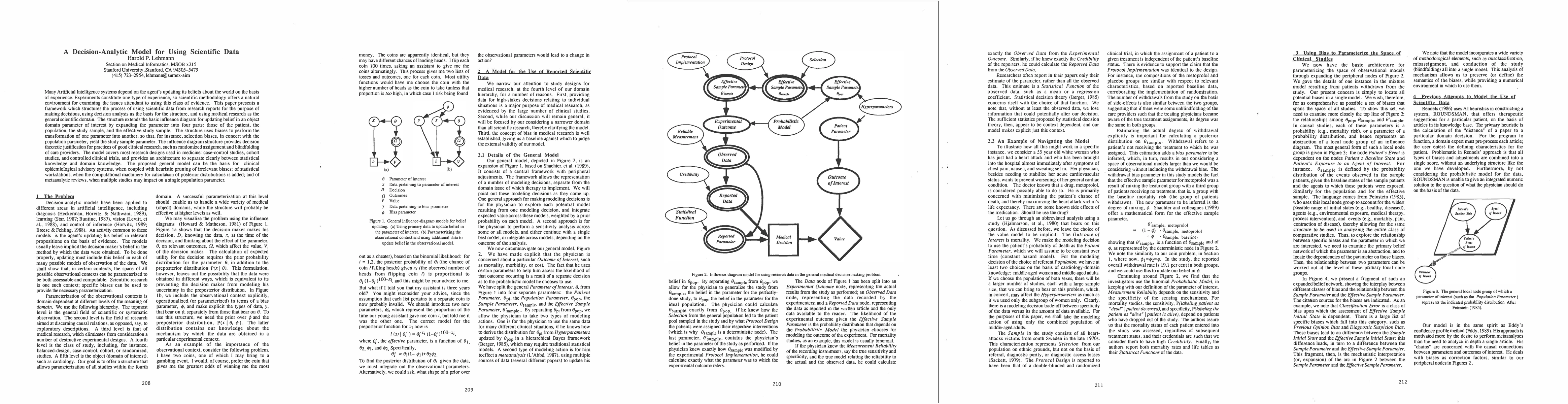 Many Artificial Intelligence systems depend on the agent's updating its beliefs about the world on the basis of experience. Experiments constitute one type of experience, so scientific methodology offers a natural environment for examining the issues attendant to using this class of evidence. This paper presents a framework which structures the process of using scientific data from research reports for the purpose of making decisions, using decision analysis as the basis for the structure and using medical research as the general scientific domain. The structure extends the basic influence diagram for updating belief in an object domain parameter of interest by expanding the parameter into four parts: those of the patient, the population, the study sample, and the effective study sample. The structure uses biases to perform the transformation of one parameter into another, so that, for instance, selection biases, in concert with the population parameter, yield the study sample parameter. The influence diagram structure provides decision theoretic justification for practices of good clinical research such as randomized assignment and blindfolding of care providers. The model covers most research designs used in medicine: case-control studies, cohort studies, and controlled clinical trials, and provides an architecture to separate clearly between statistical knowledge and domain knowledge. The proposed general model can be the basis for clinical epidemiological advisory systems, when coupled with heuristic pruning of irrelevant biases; of statistical workstations, when the computational machinery for calculation of posterior distributions is added; and of meta-analytic reviews, when multiple studies may impact on a single population parameter.
