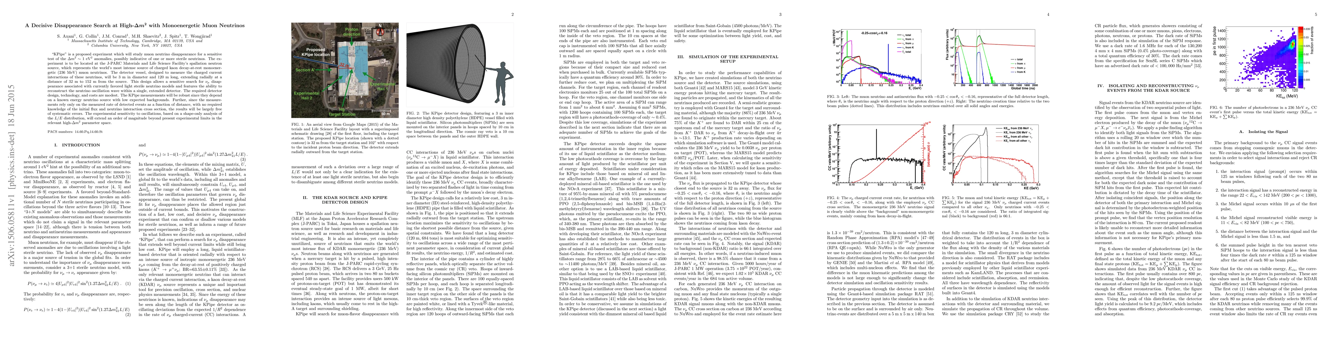 The KPipe experiment aims to detect muon neutrino disappearance at high $\Delta m^2$ using monoenergetic muon neutrinos from J-PARC's spallation neutron source. It seeks to test anomalies in the $\Delta m^2 \sim 1 \mathrm{eV}^2$ range, potentially indicating sterile neutrinos, with a design that minimizes systematic errors and extends sensitivity beyond current limits.
