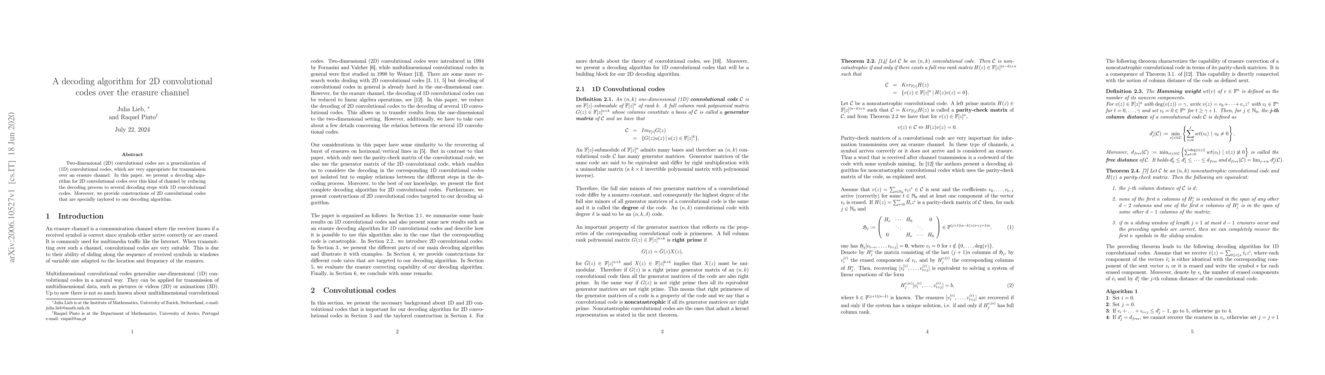 This paper proposes a decoding algorithm for 2D convolutional codes over erasure channels, breaking down the process into several steps using 1D convolutional codes, and introduces specially tailored 2D convolutional code constructions to enhance the algorithm's efficiency.