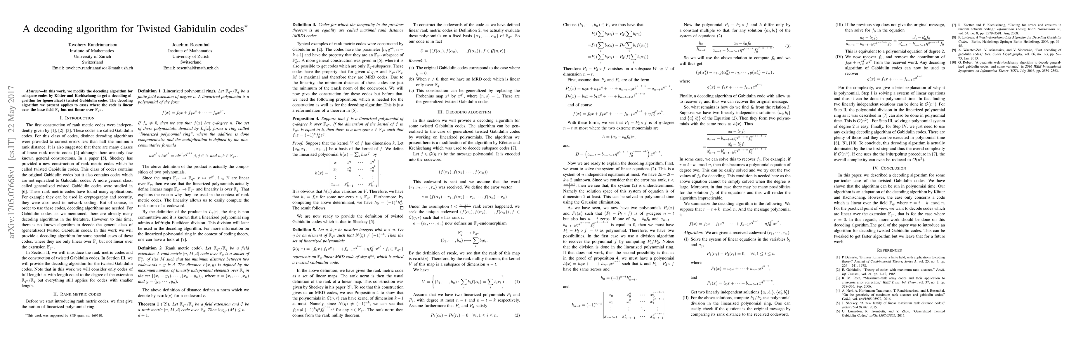 In this work, we modify the decoding algorithm for subspace codes by Koetter and Kschischang to get a decoding algorithm for (generalized) twisted Gabidulin codes. The decoding algorithm we present applies to cases where the code is linear over the base field $\mathbb{F}_q$ but not linear over $\mathbb{F}_{q^n}$.