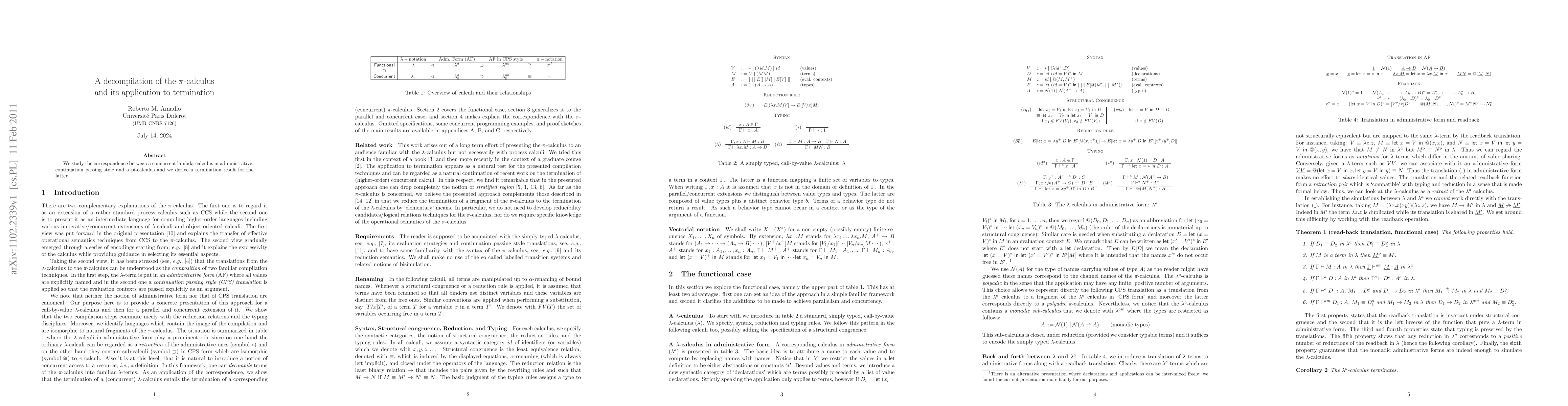 Summary: This paper explores the relationship between a concurrent lambda-calculus and pi-calculus, establishing a termination result for the pi-calculus through this correspondence. The study provides insights into the structural properties that ensure termination in concurrent systems.