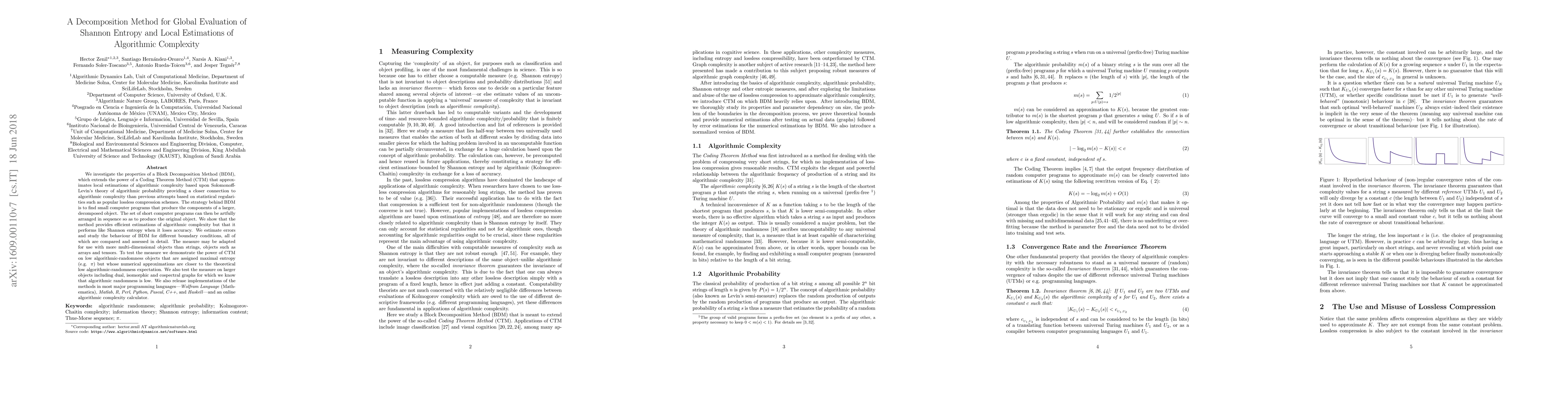This paper introduces a Block Decomposition Method (BDM) to estimate algorithmic complexity based on Solomonoff-Levin's theory, providing efficient approximations and upper bounds on the shortest programs generating objects. It demonstrates the method's effectiveness on low algorithmic-randomness objects and releases implementations in multiple programming languages.
