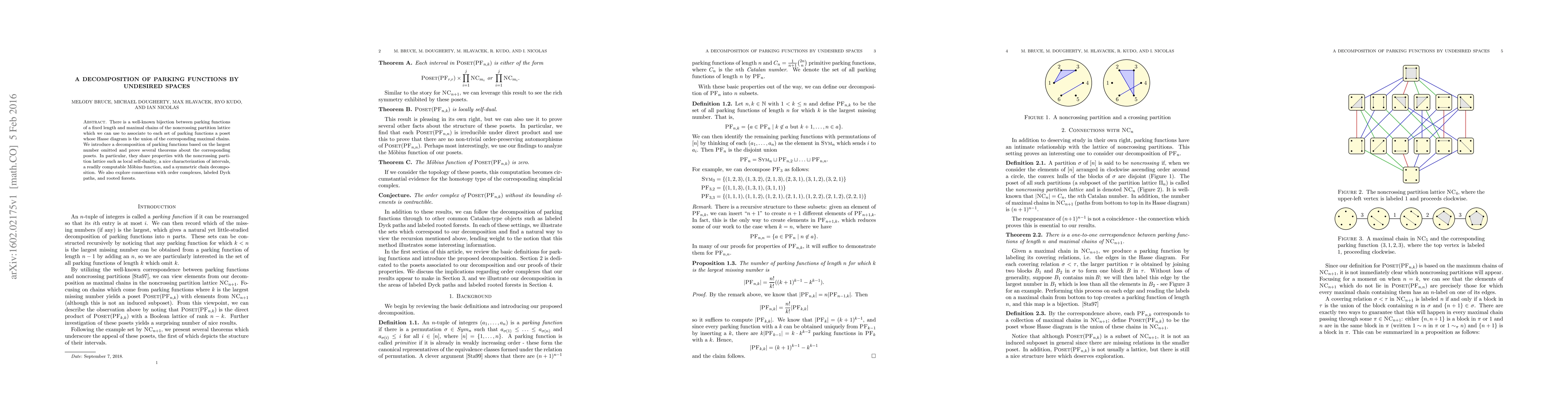 This paper decomposes parking functions based on the largest omitted number, establishing a bijection with maximal chains in the noncrossing partition lattice. It proves several properties of the resulting posets, including local self-duality, interval characterization, a computable M\"obius function, and symmetric chain decomposition, while exploring connections to order complexes, labeled Dyck paths, and rooted forests.